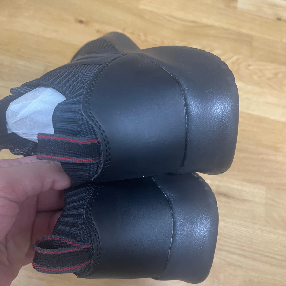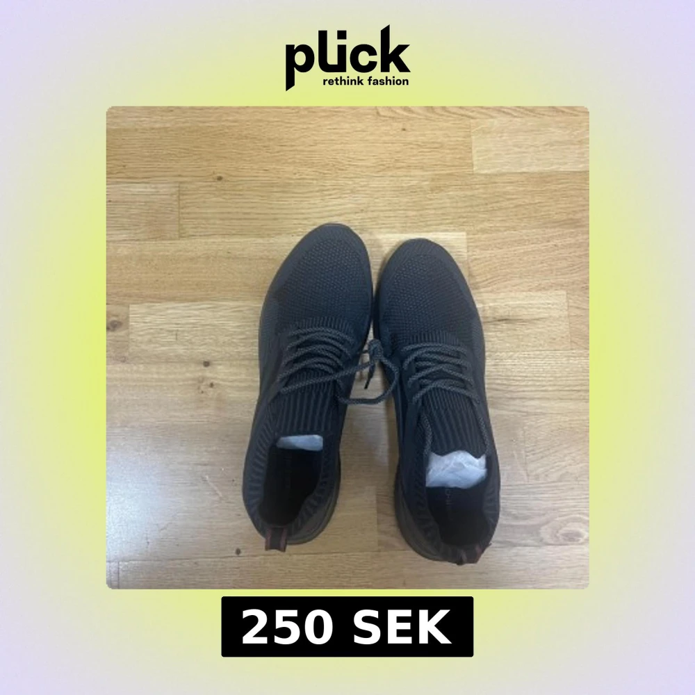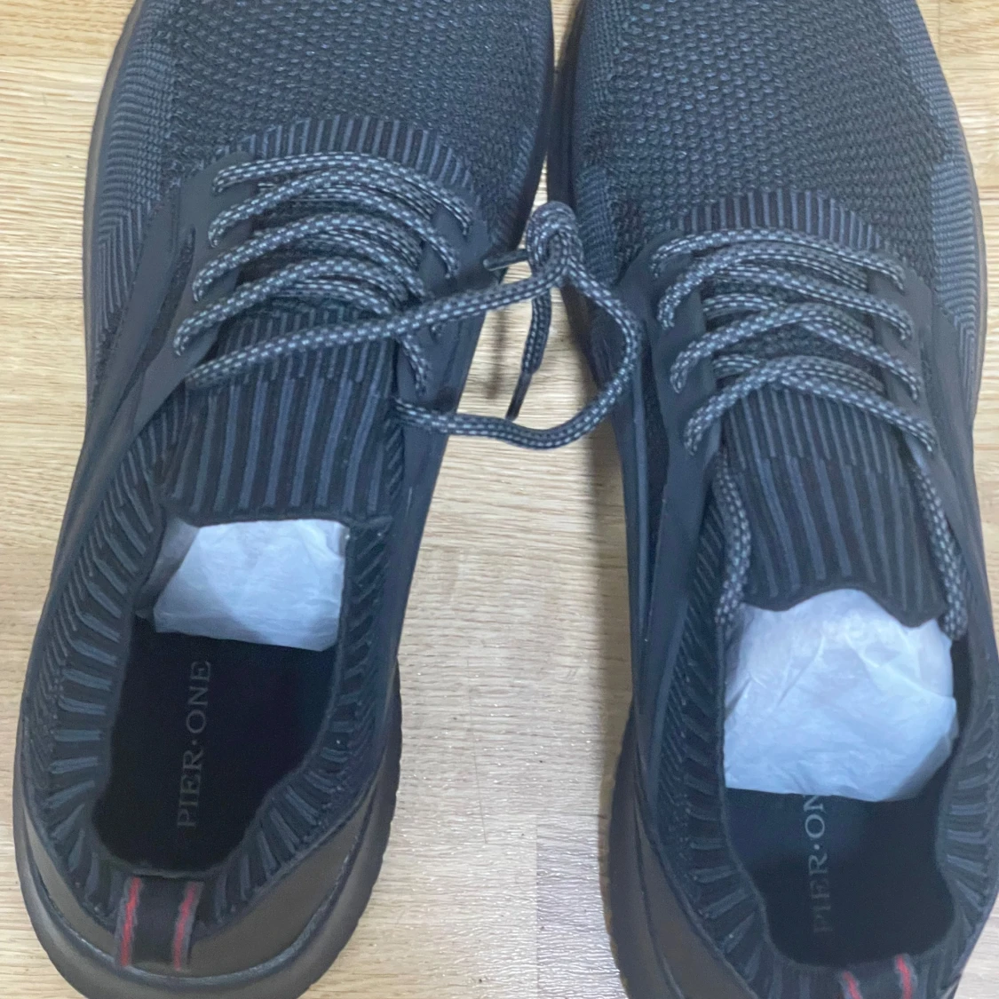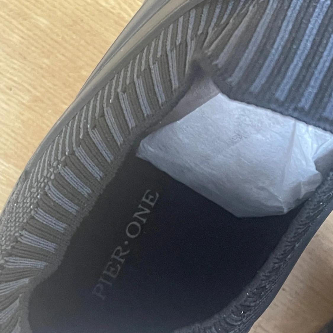Svarta sneakers från Pier One med stickad ovandel och snygga detaljer. Skorna har snörning, ribbade partier runt öppningen och en platt, mönstrad sula för bra grepp. Perfekta för en clean och sportig look.