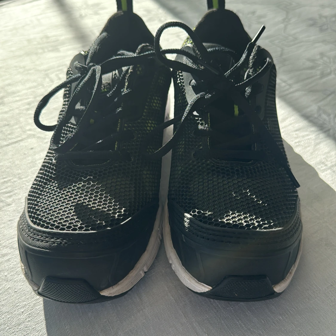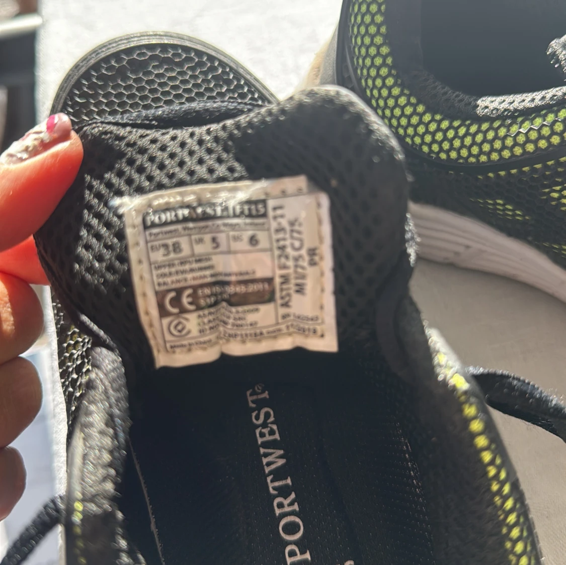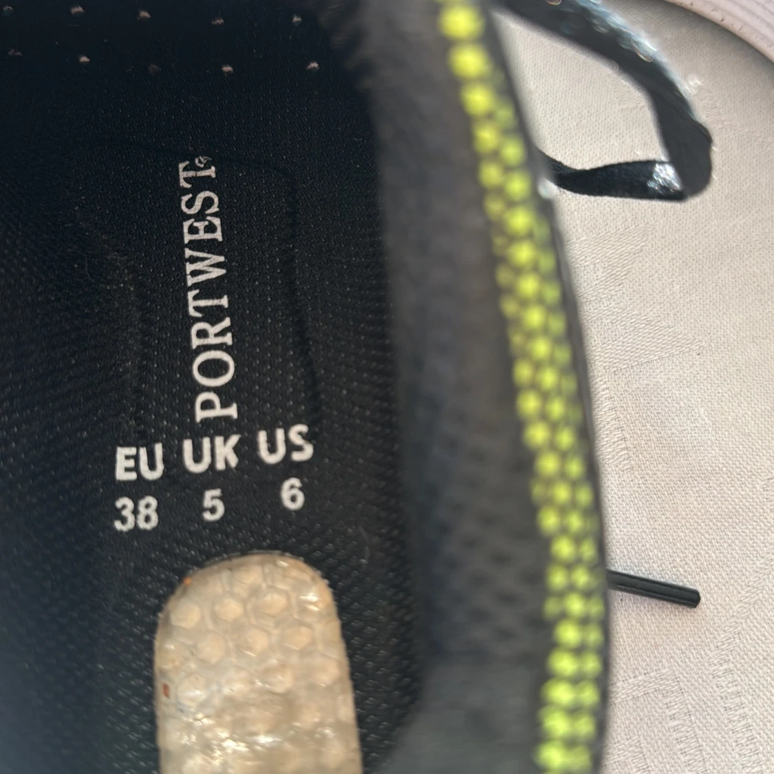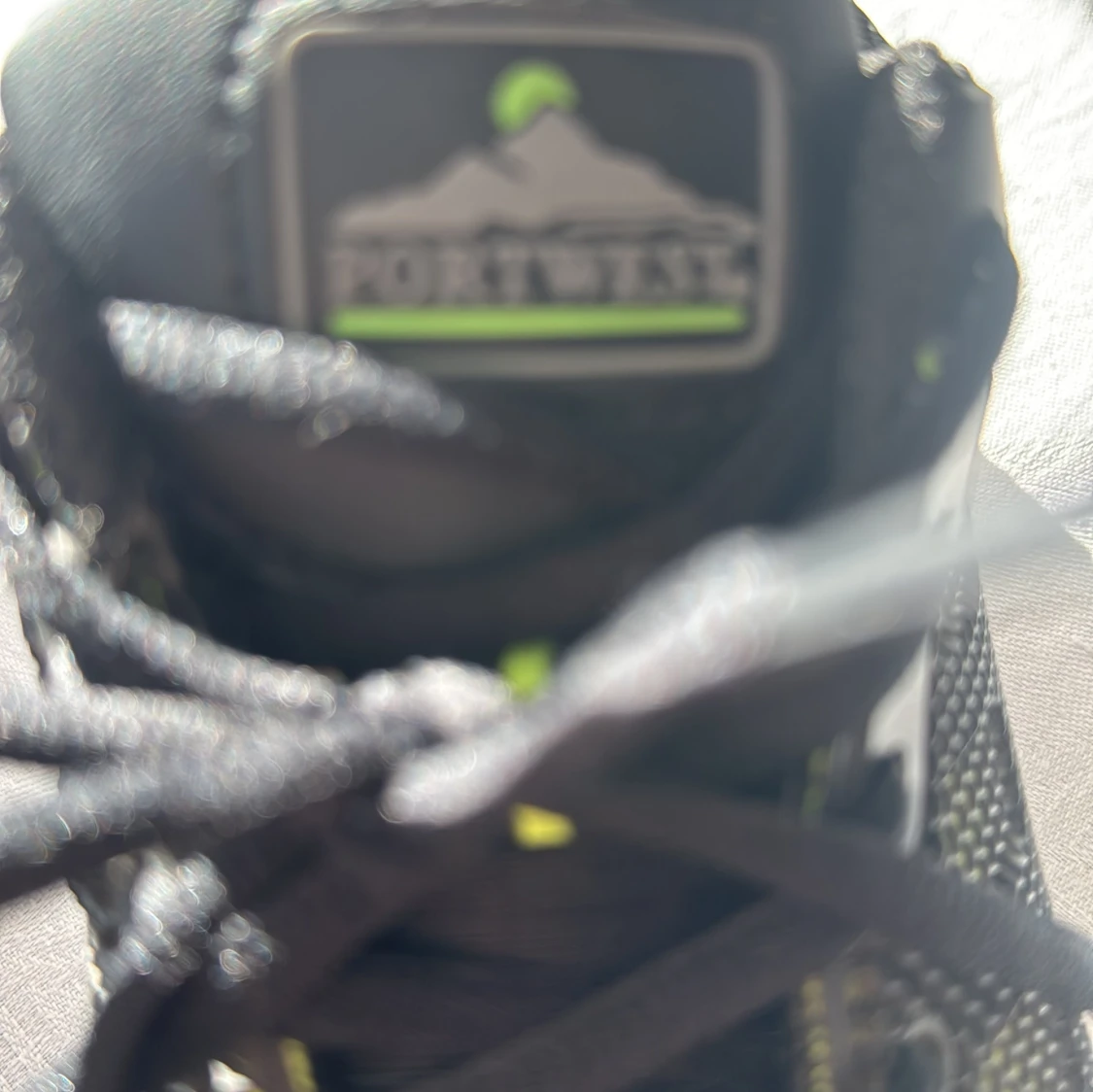 Svarta sneakers från Portwest med mesh-överdel och detaljer i neongrönt. Skorna har snörning och vit sula med svart kant. Perfekta för dig som gillar sportig stil och vill ha bekväma skor till vardagen.
