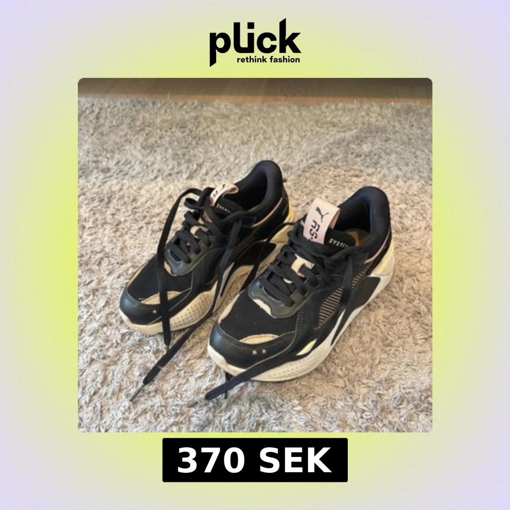 Snygga svarta sneakers från Puma med vita och beige detaljer. Skorna har en modern design med snörning och orginalsulan är utbytt. Säljer då de inte används mycket