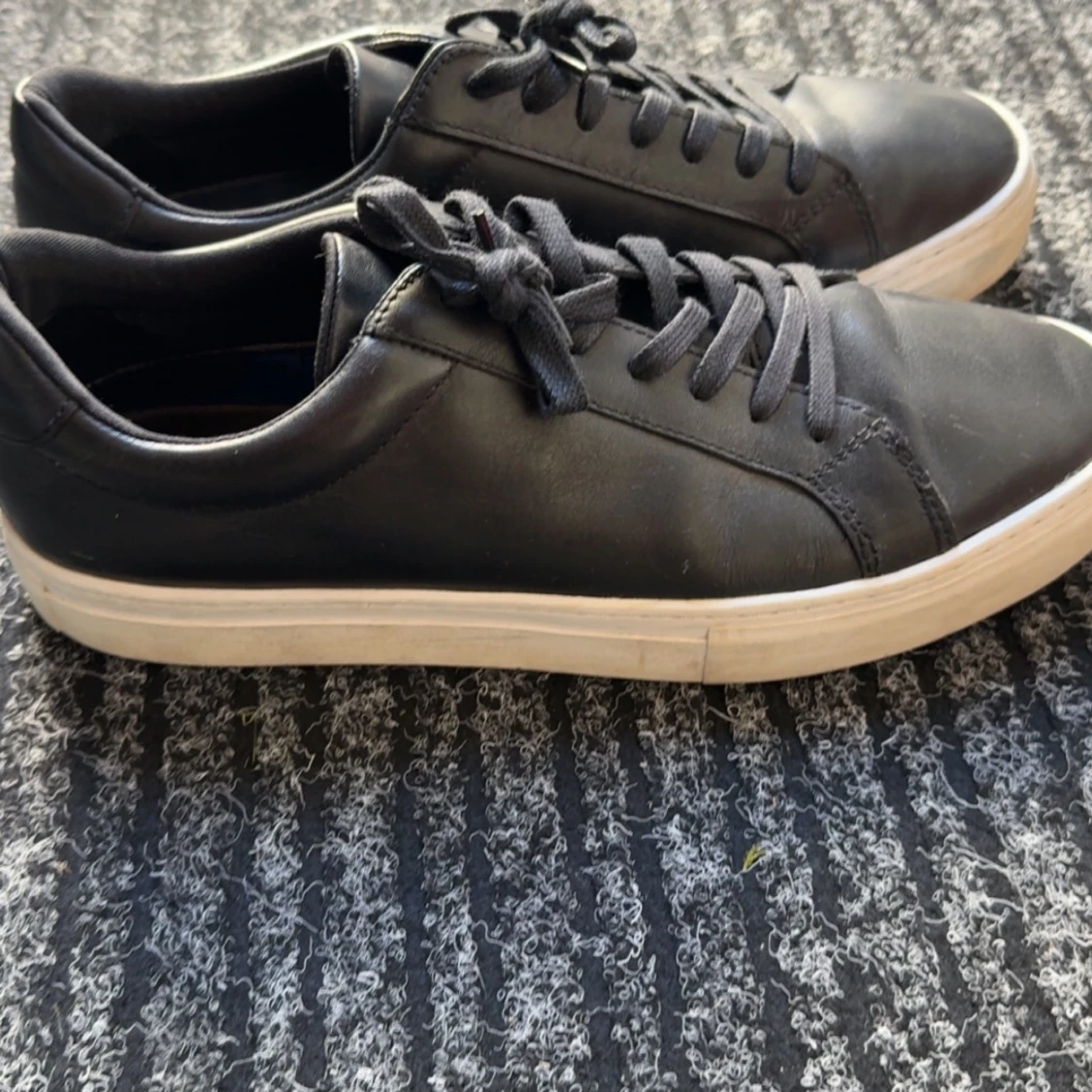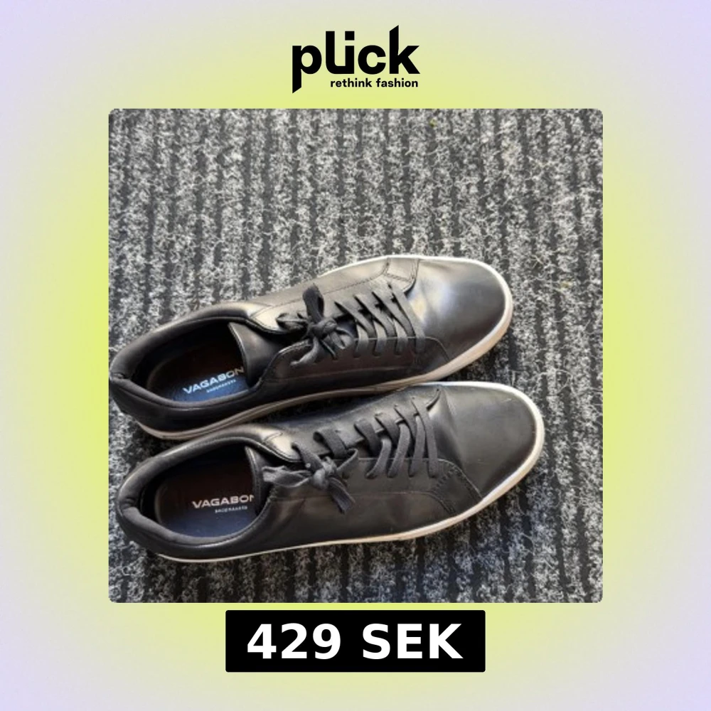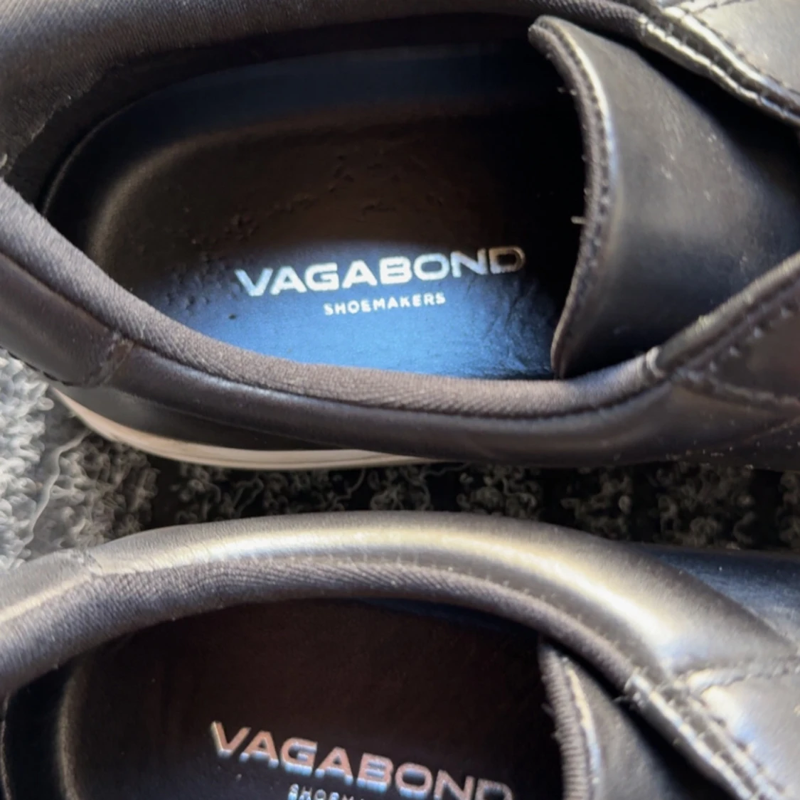 Säljer ett par stilrena svarta sneakers från Vagabond med snörning och vit sula. Skorna är i skinn och har en klassisk rund tå. Perfekta för dig som gillar enkel och tidlös design.