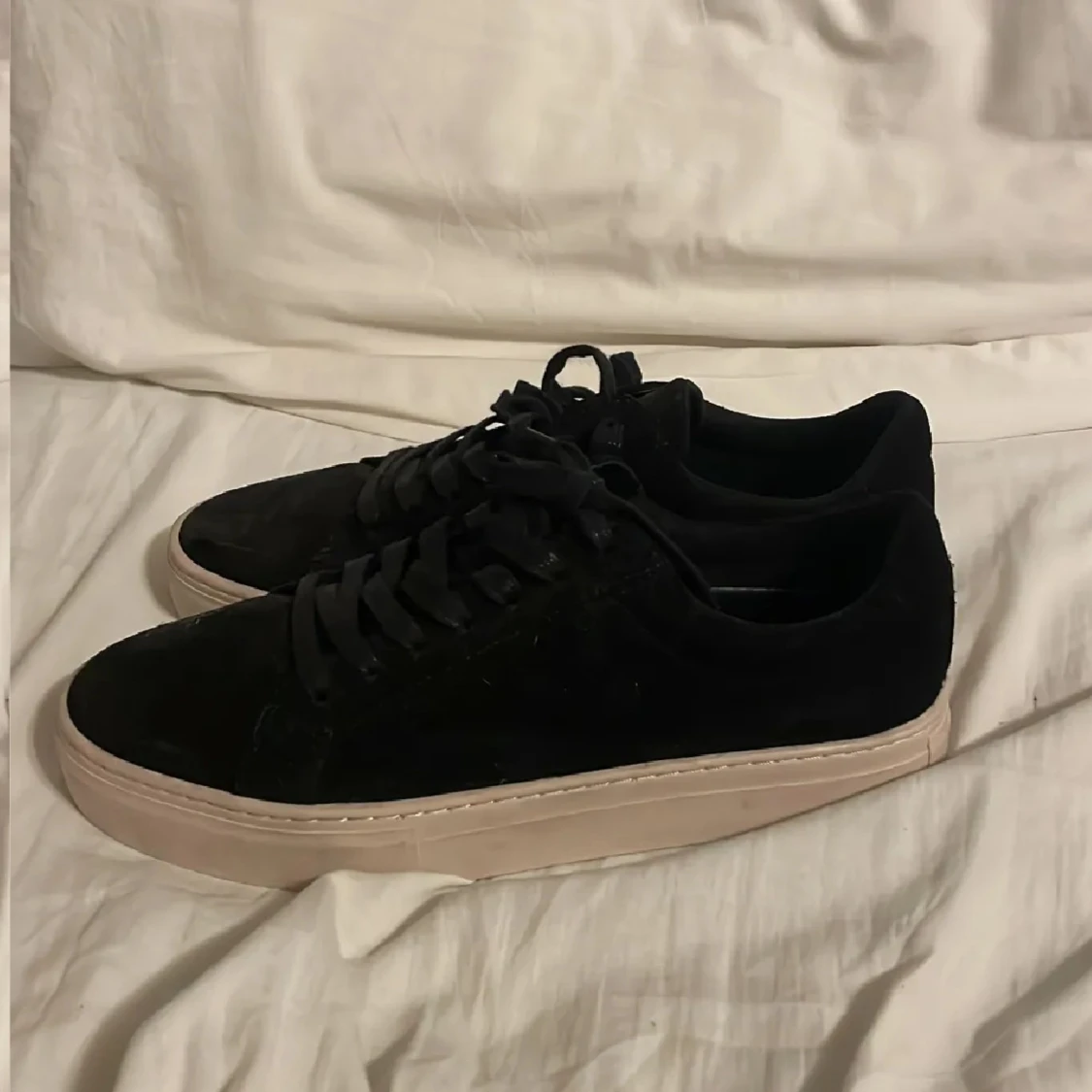 Svarta sneakers från Vagabond med ovandel i mocka och klassisk snörning. Skorna har en chunky, beige platt sula som ger en modern vibe. Perfekta för dig som gillar stilrena och trendiga skor med en clean look.