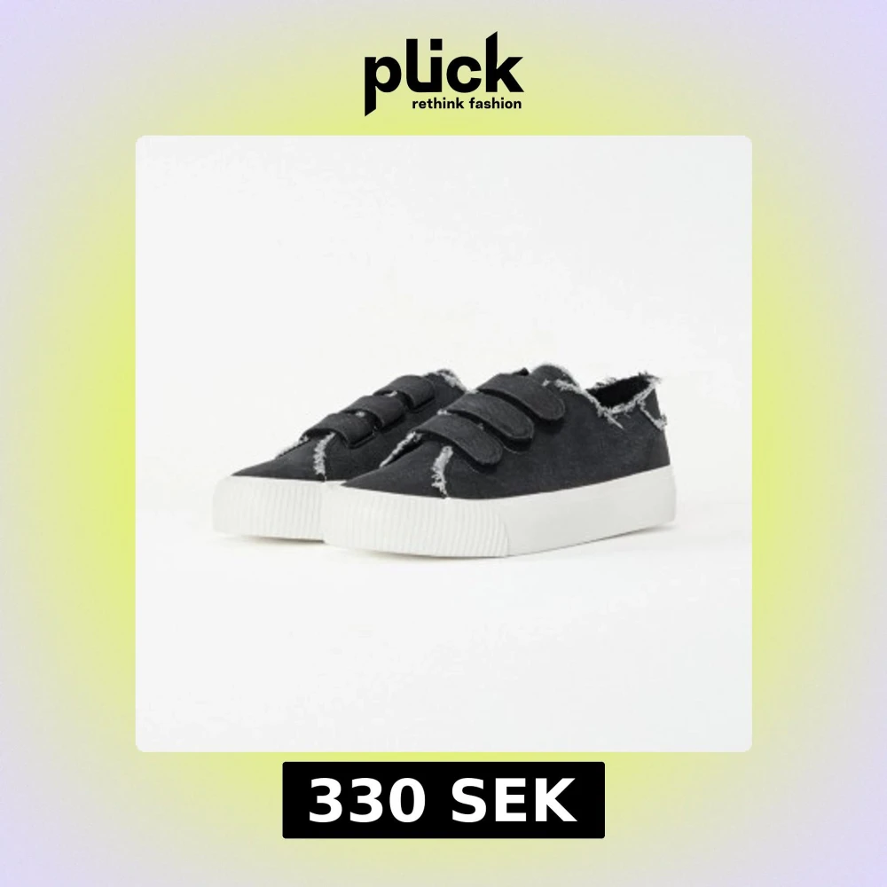 Svarta sneakers i canvas från Even&Odd med coola fransade kanter och tre breda kardborreband. Skorna har vit platt sula och en avslappnad streetstil som passar perfekt till jeans eller shorts. De är i nyskick, använt dem två gånger då de är för stora för mig!