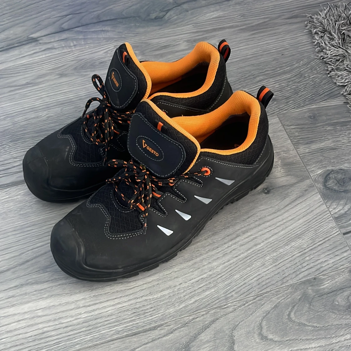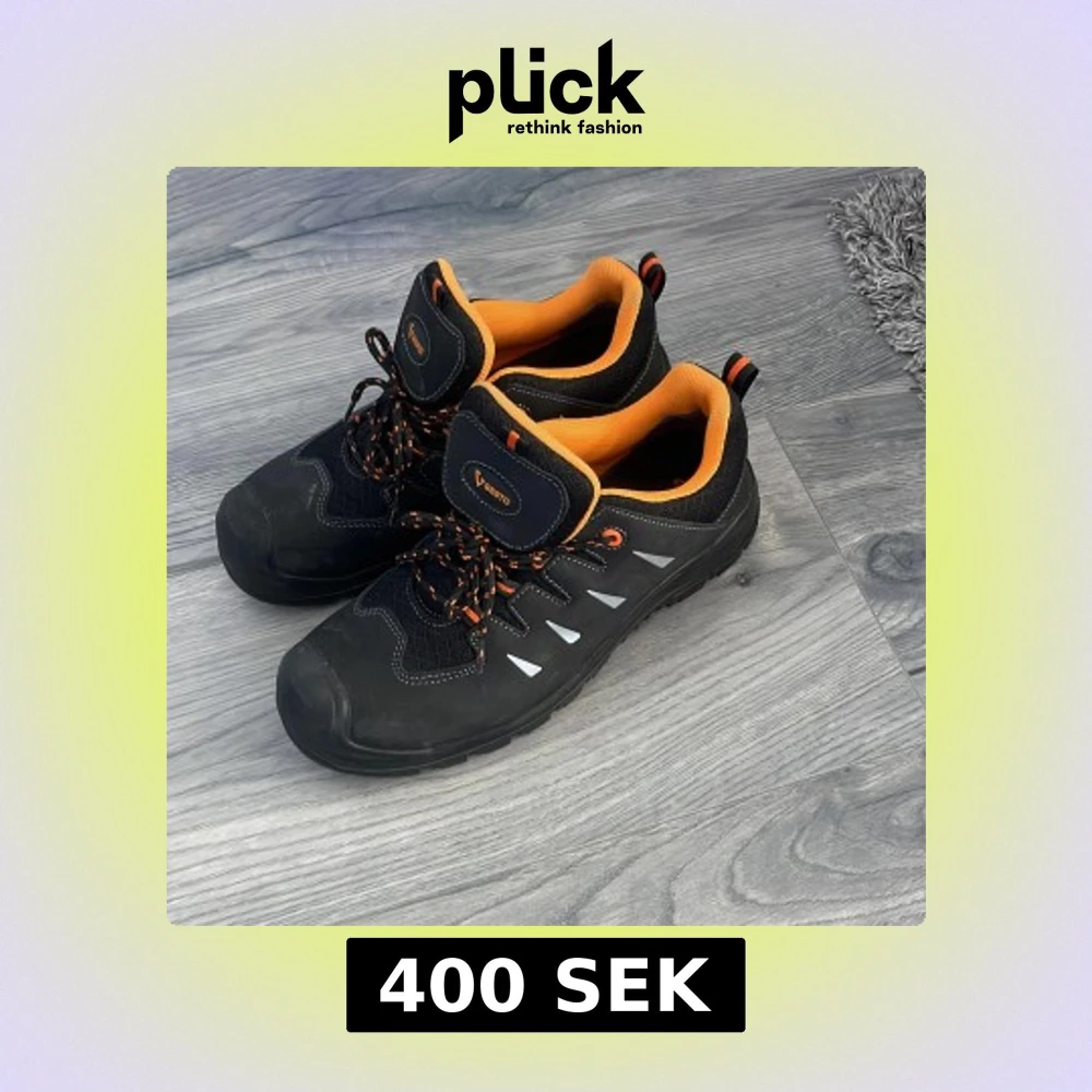 Svarta sneakers med orange insida och detaljer, samt svarta och orangea snören. Skorna har platt sula och rund tå, samt reflekterande inslag på sidorna. Perfekta för dig som gillar sportig stil. Helt nya