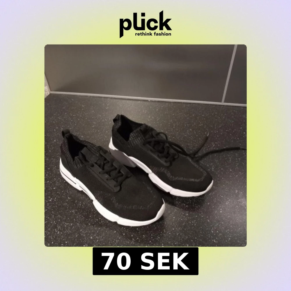 Snygga svarta sneakers med vit sula och snörning. Använt dem 1 gång.