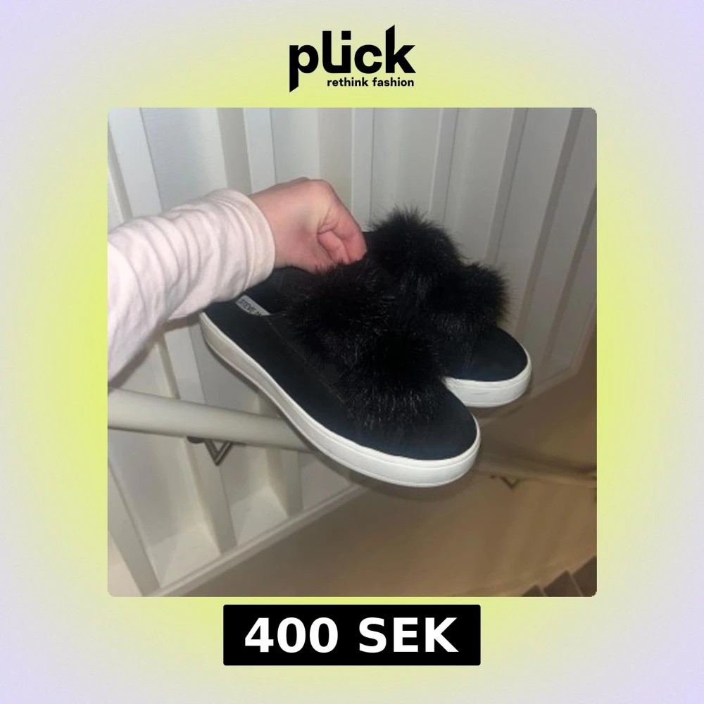 Jättefina svarta sneakers från Steve Madden med två söta fluff bollar på ovansidan. Dem är i nyskick utan några defekter och jag säljer för dem tyvärr var för stora på mig. Storlek 39/40!🥰skriv om ni har några frågor, pris går att diskuteras