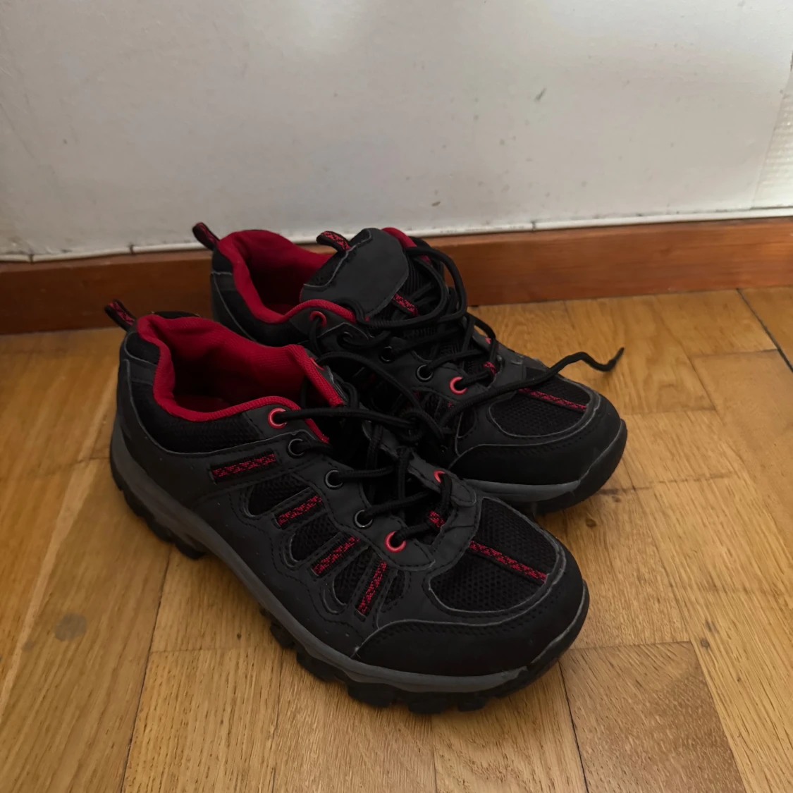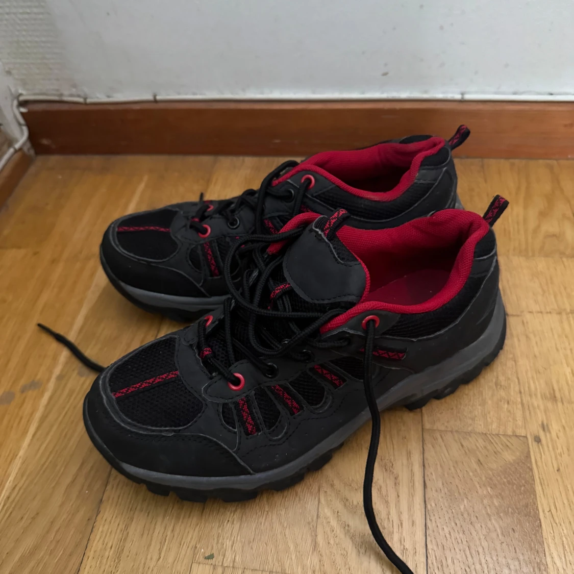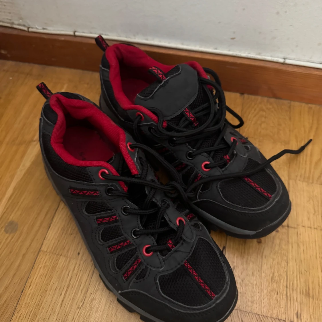 Ett par svarta sneakers i stl 38 som är i bra skick säljs för 100 kr.