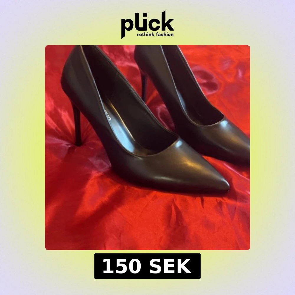 Eleganta svarta pumps med spetsig tå och hög klack. Perfekta för en stilren look och ger en liten extra touch! Storlek 39 men skulle säga en 40