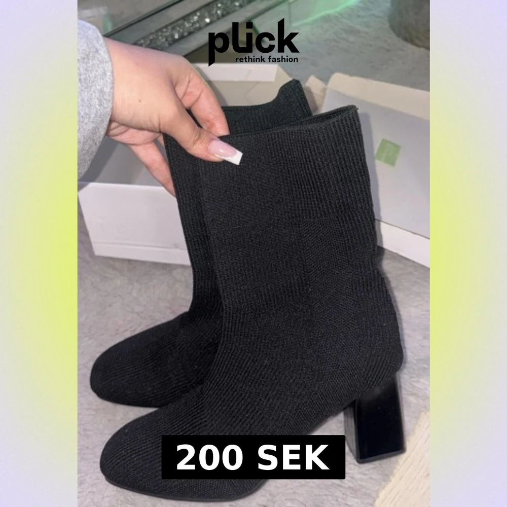 Säljer dessa superfina och trendiga boots! Använda endast 1 gång, i mycket fint skick. • Stretchigt stickat material • Bekväma och stabila klackar • Passar både till vardag och fest • Storlek: 39