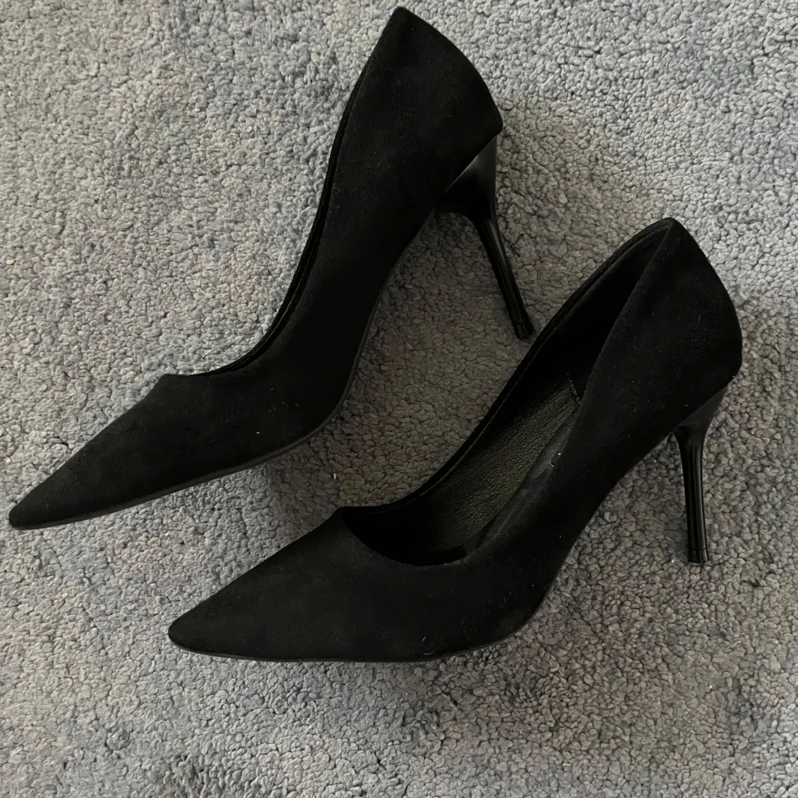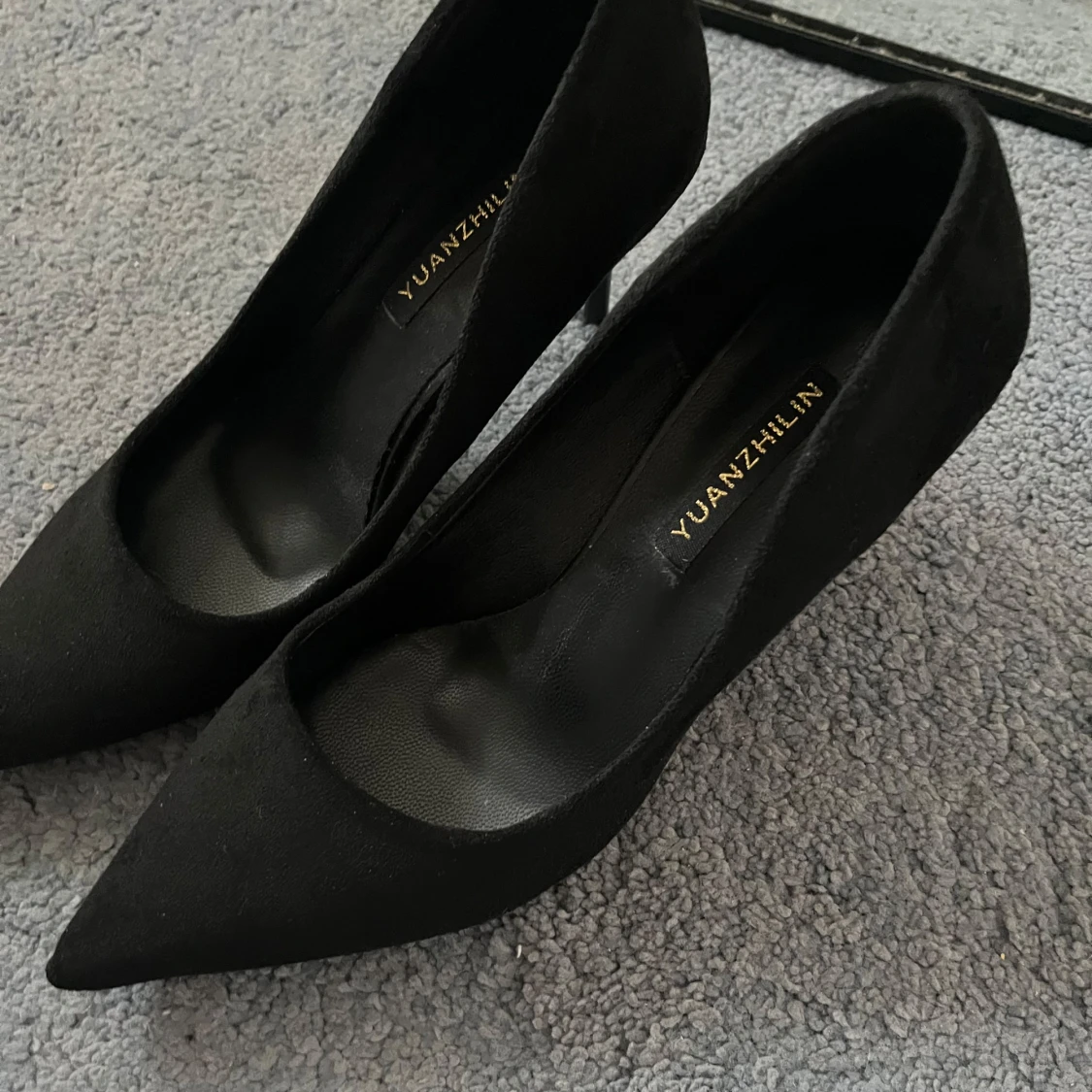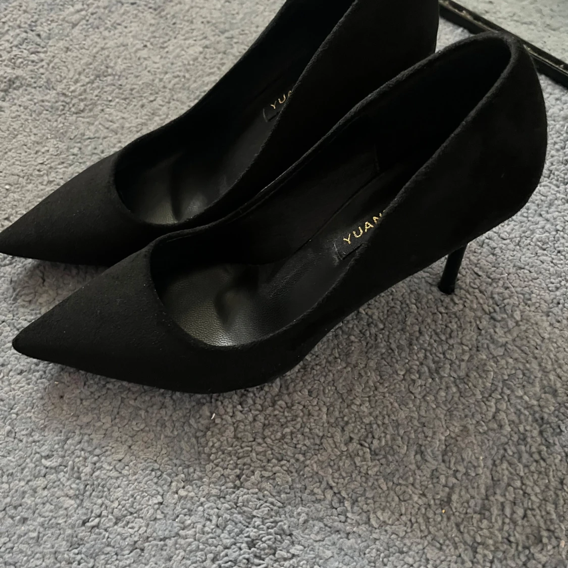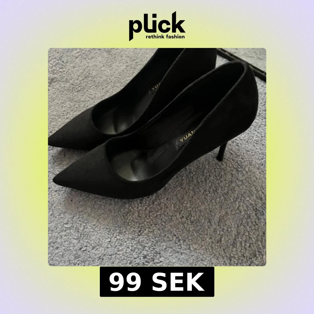 Svarta stilettklackar, ca 8-9cm höga Köpta på vinted men aldrig använda av mig och förra ägaren skrev att de inte var använda av henne heller, det kan jag ju dock inte garantera