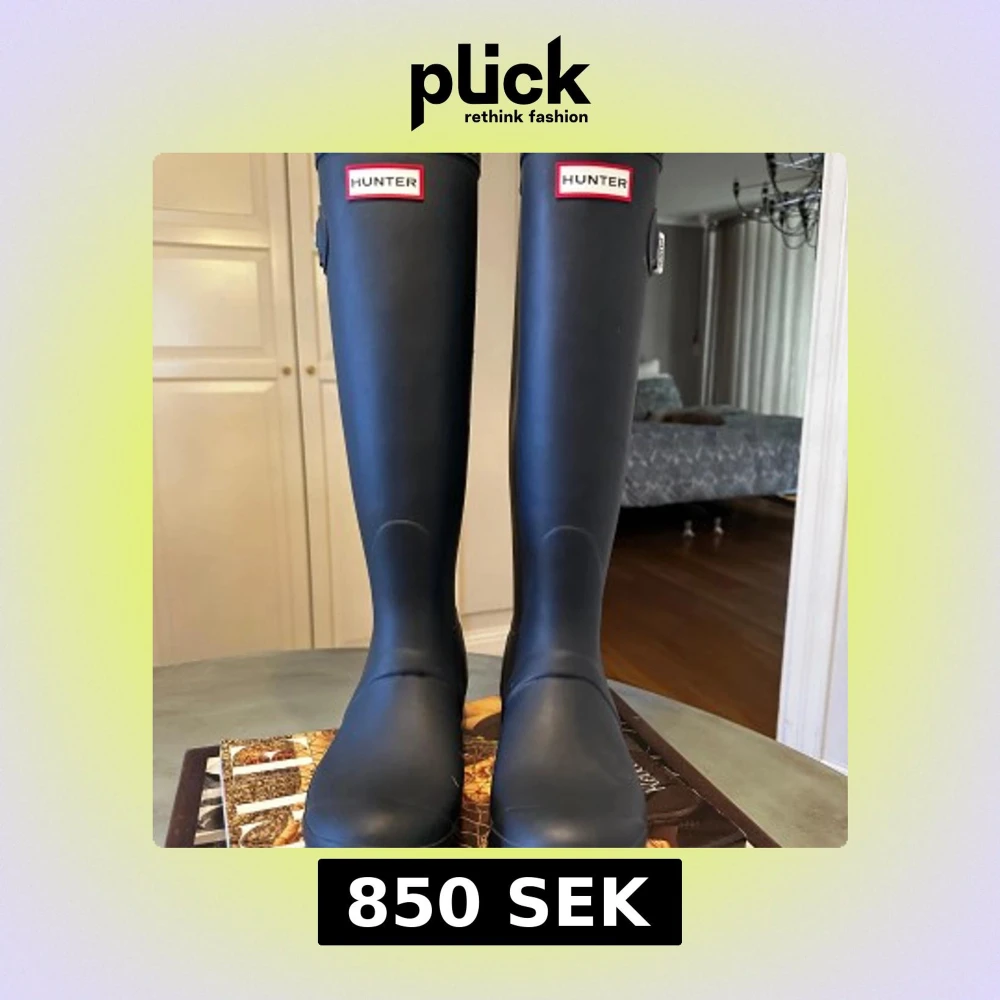 Snygga blå stövlar från Hunter med klassisk design och justerbart spänne på sidan. Perfekta för regniga dagar och håller fötterna torra och bekväma. Insidan har ett mönstrat foder för extra stil.