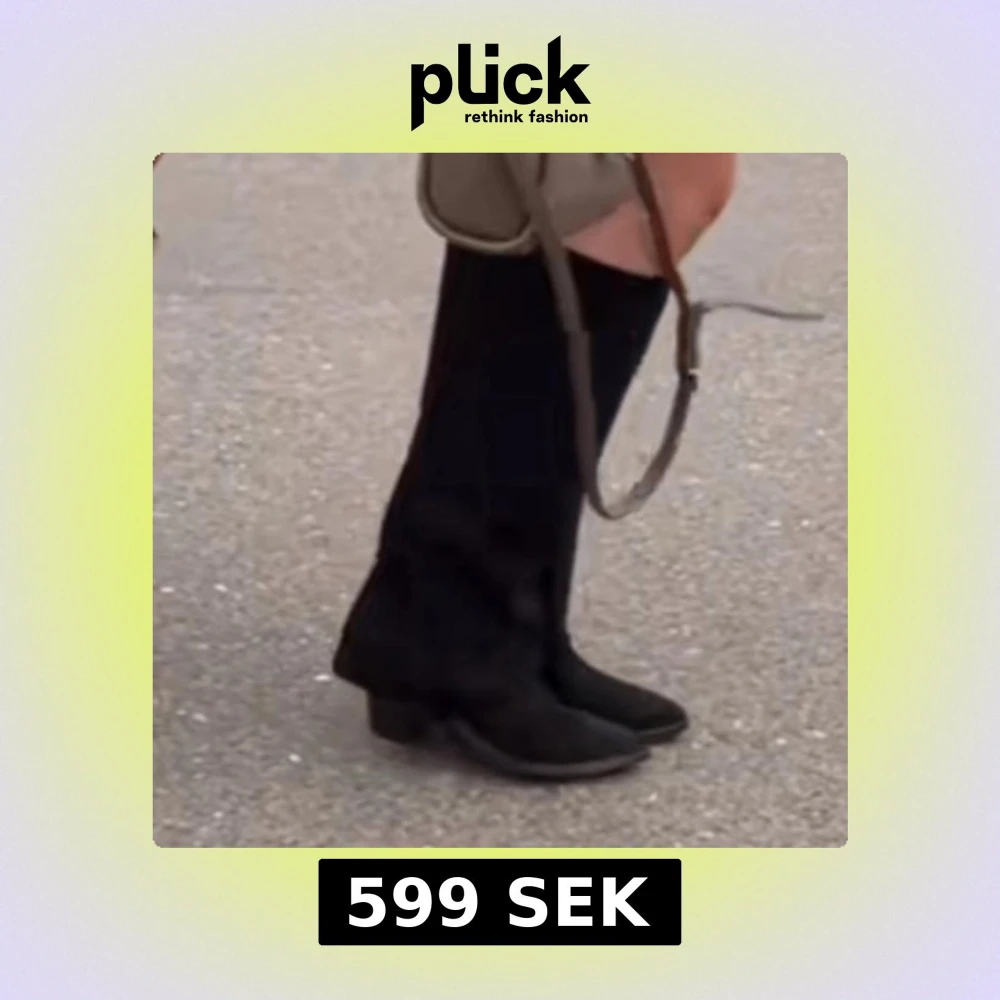 Snygga svarta stövlar i mocka med klack och spetsig tå. Perfekta för att ge en elegant touch till din outfit. De är knähöga och passar bra till både kjol och byxor.