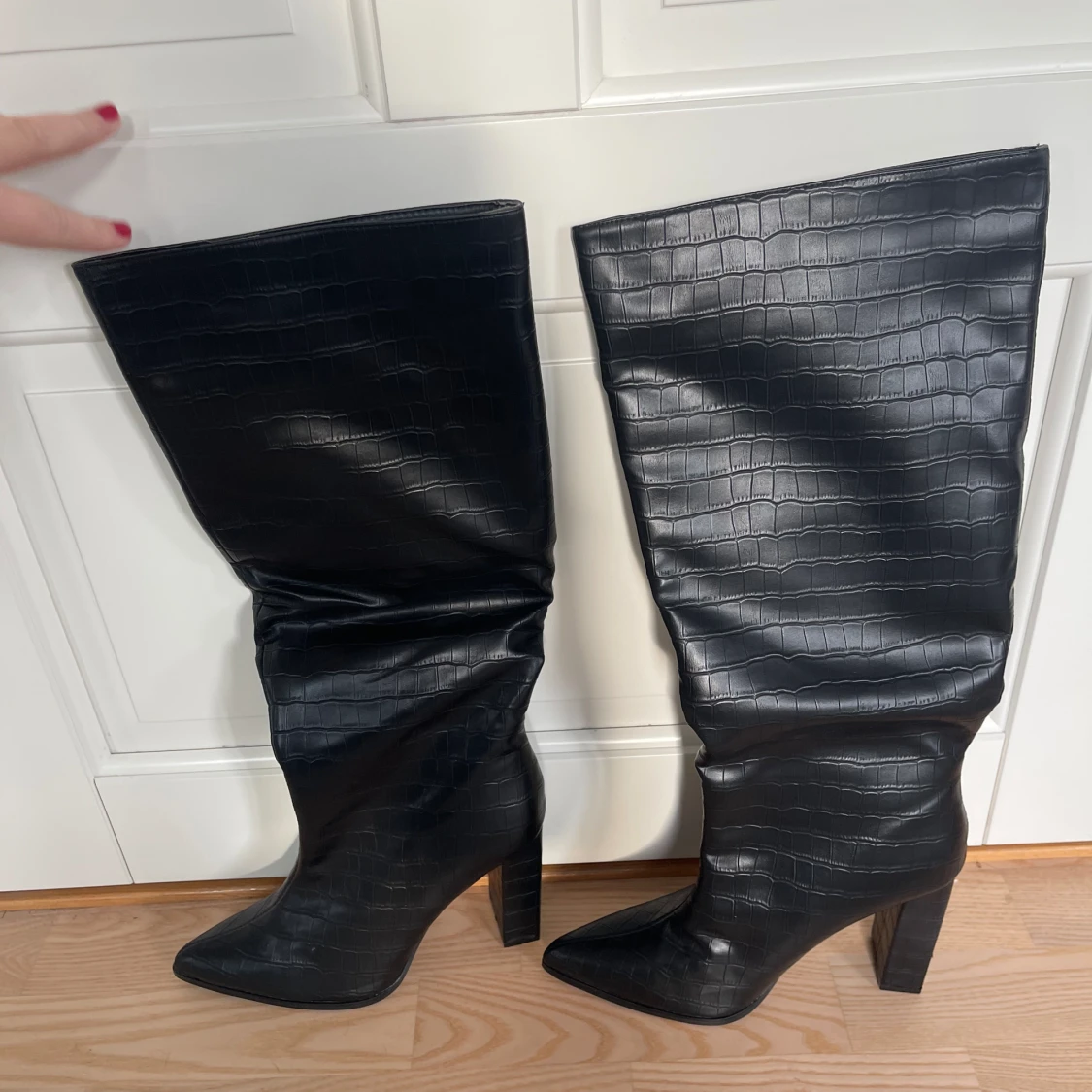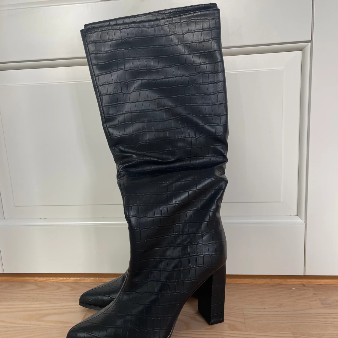 Svarta stövlar med klack från public desire i storlek 41. Dom är aldrig använda. Säljer för 350kr exklusive frakt