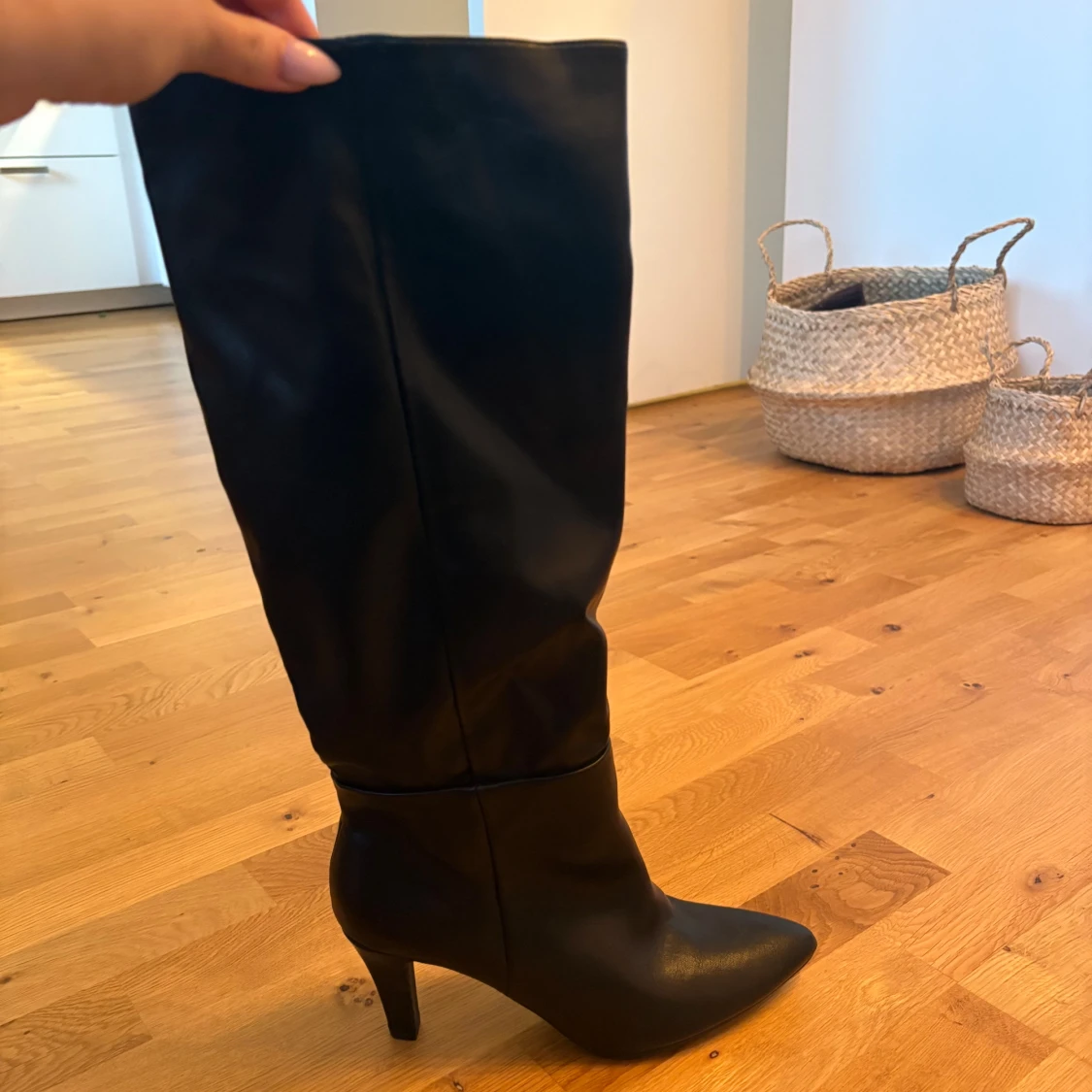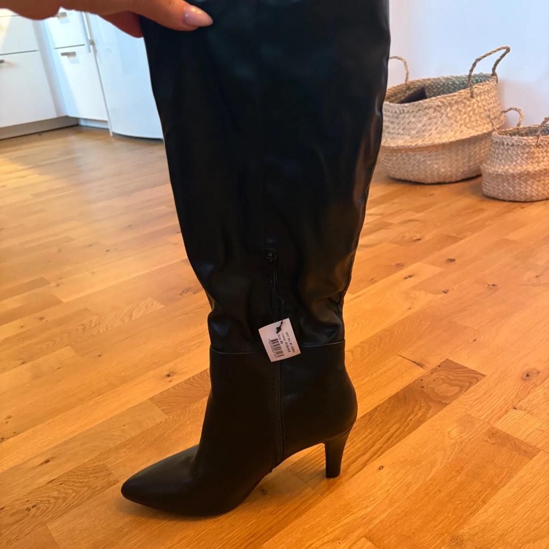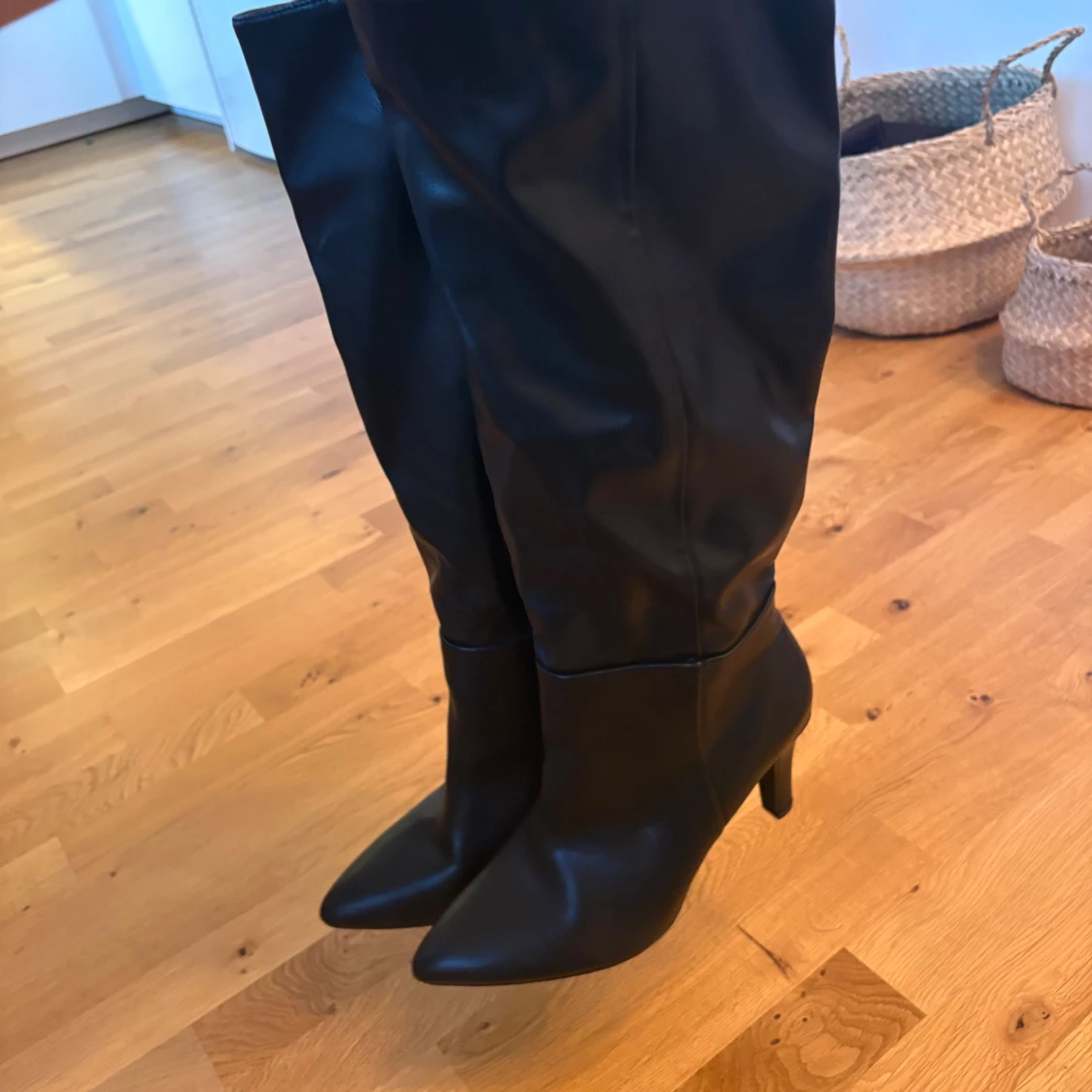 Svarta stövlar med klack och spetsig tå. Aldrig använda, lapp kvar. Nypris ligger på 999kr. Stl 40 men passar mig som har 38,5-39. Fler bilder skickas vid önskemål ☺️