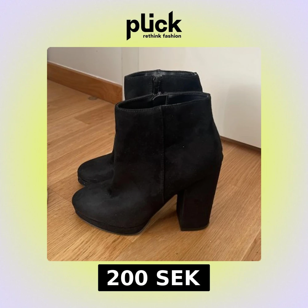 Snygga svarta stövletter från Call It Spring i storlek 35. Skorna har en chunky hög klack, rund tå och är gjorda i mockaimitation. Dragkedja på insidan för enkel påtagning. Perfekta för dig som vill ha en stilren och trendig look.