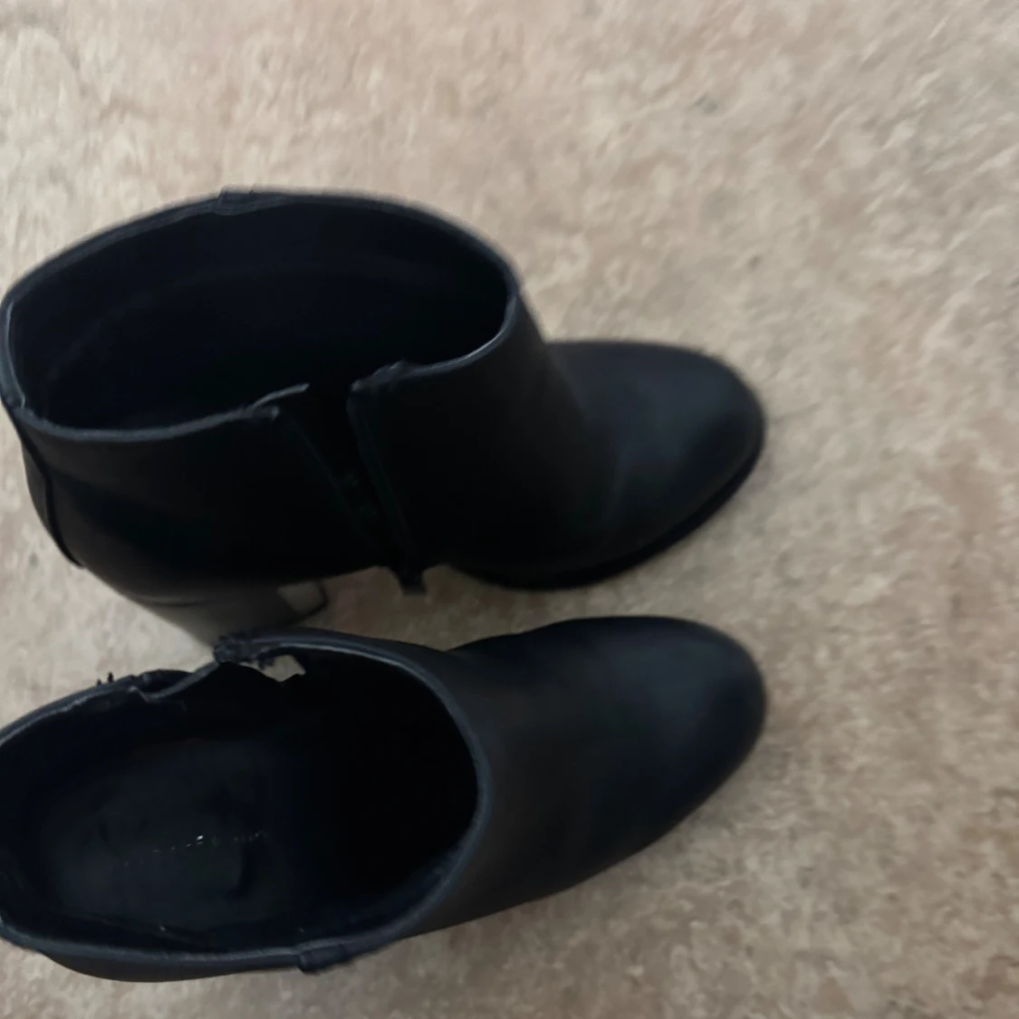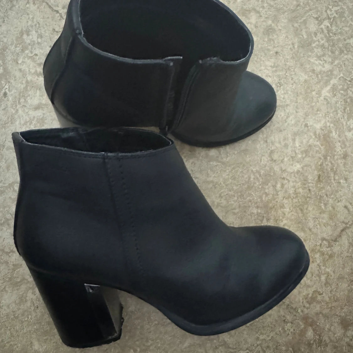 Snygga svarta stövletter med chunky klack och rund tå. Skorna är i skinnimitation och har en stilren design som passar till många outfits. Perfekta för dig som vill ha en klassisk men trendig look.