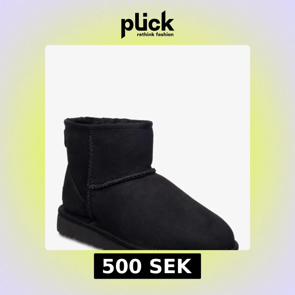 Mysiga svarta UGG boots i klassisk modell med rund tå och platt sula. Skorna är fodrade med mjuk päls på insidan och har en ovandel i mocka. Perfekta för kalla dagar och ger en chill vibe till din outfit.