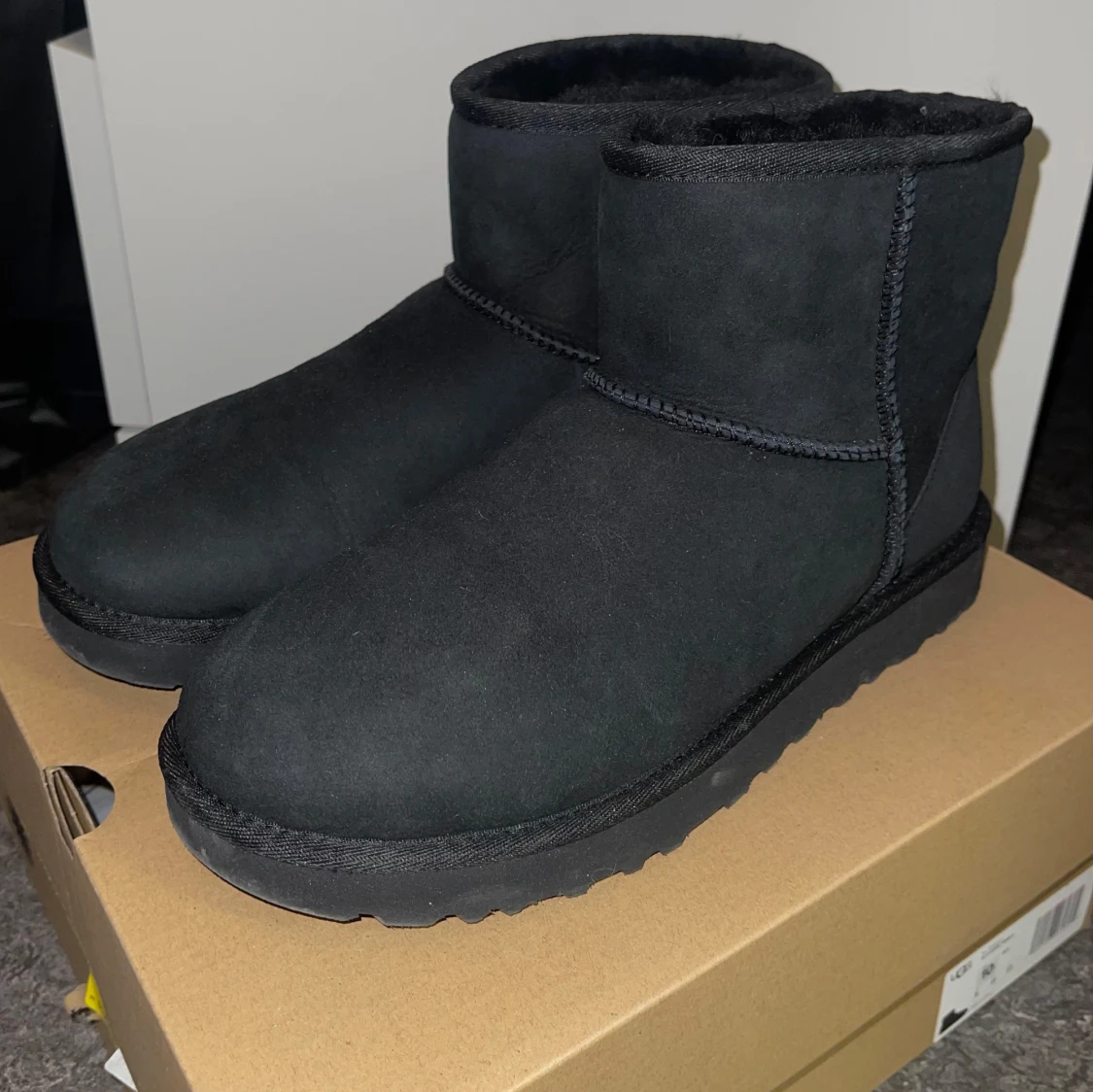 Säljer ett par svarta UGG Classic Mini II i storlek 41, dam. Mycket bra skick, använda ett par fåtal gånger.