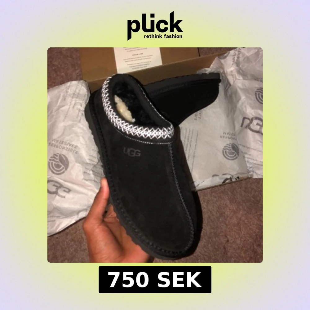 Svarta slip-in skor från UGG med mjuk insida i fårull och ovandel i mocka. Skorna har dekorativt mönster i vitt runt öppningen och en robust, mönstrad sula för extra grepp. Perfekta för att hålla fötterna varma och bekväma under kyliga dagar.
