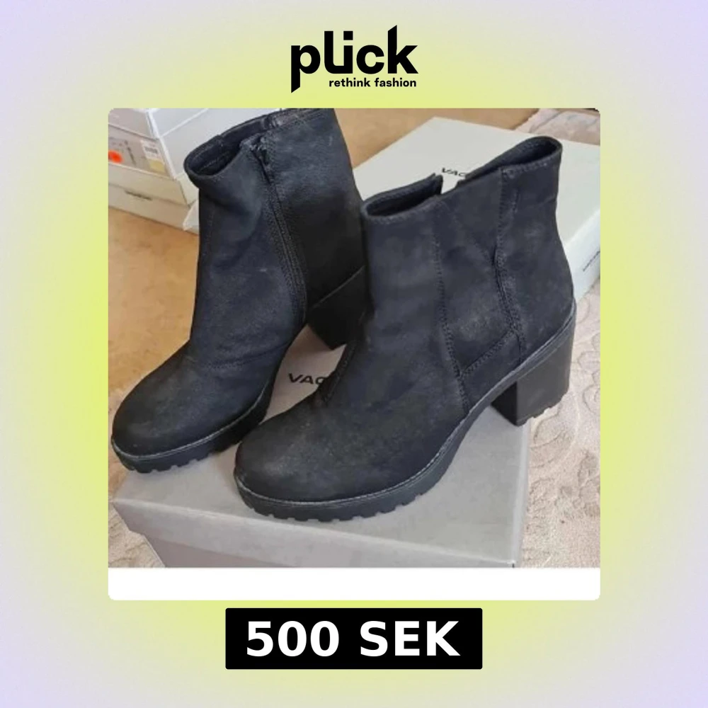 Snygga svarta boots från Vagabond i mocka med grov sula och blockklack. Skorna har rund tå, dragkedja på sidan och en stilren design som passar till många outfits. Perfekta för dig som vill ha både stil och komfort.
