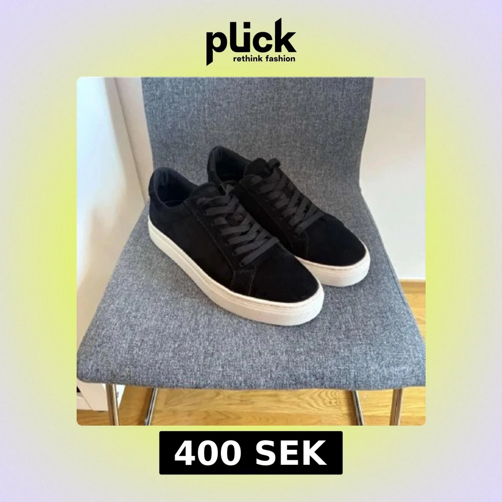 Snygga svarta sneakers från Vagabond med ovandel i mjuk mocka och vita platta gummisulor. Klassisk rund tå och snörning framtill. Perfekt för dig som gillar stilrena och tidlösa skor med en modern touch. Storleken är att de passar 41. Sulan kan bara bytas till vilken man vill