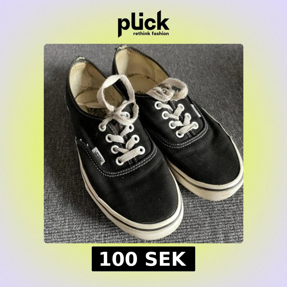 Klassiska svarta sneakers från Vans med vit sula och snörning. Perfekta för en avslappnad stil och passar till det mesta. De har en enkel och tidlös design som aldrig går ur mode. Välanvända, men kan säkert glädja nån mer ⭐️