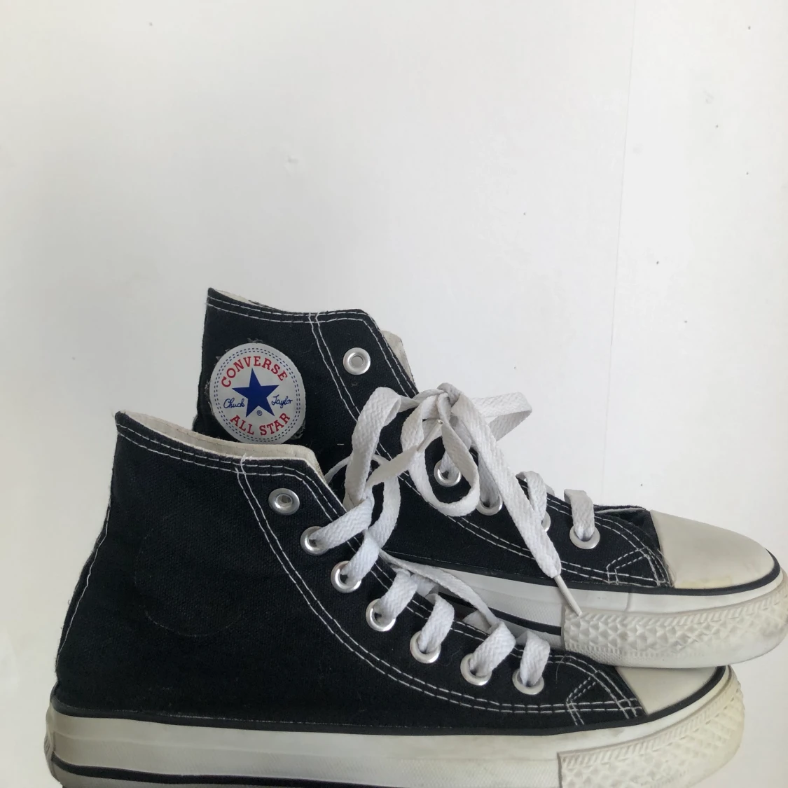 Svarta äkta converse i storlek 38 bra skick och inga skador förutom att de är lite smutsiga men de är inte alls mycket
