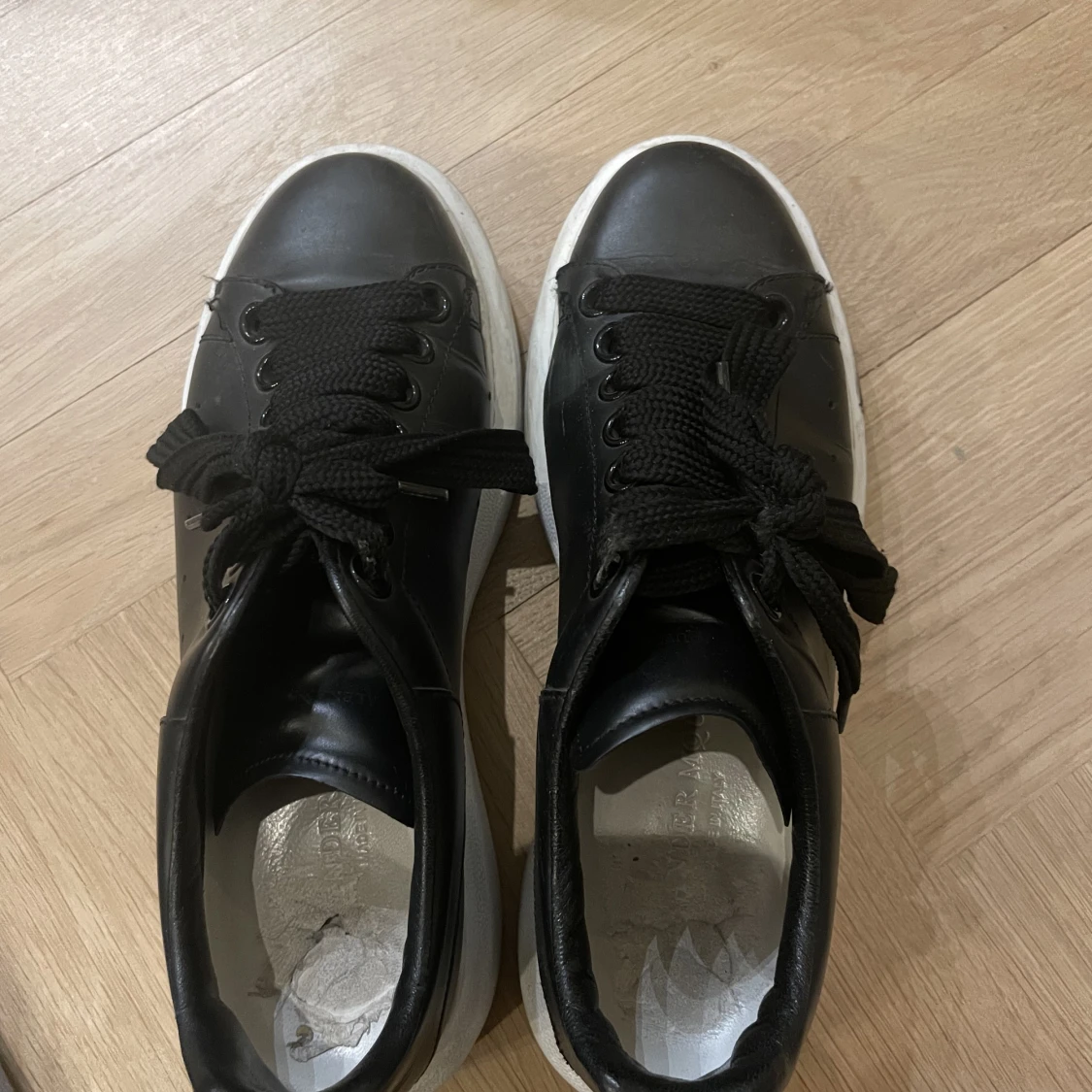 Säljer dessa Alexander McQueen sneakers stl 38. Kan lätt putsas upp på utsidan så de ser helt nya ut. Men sulan på insidan är lite nött.