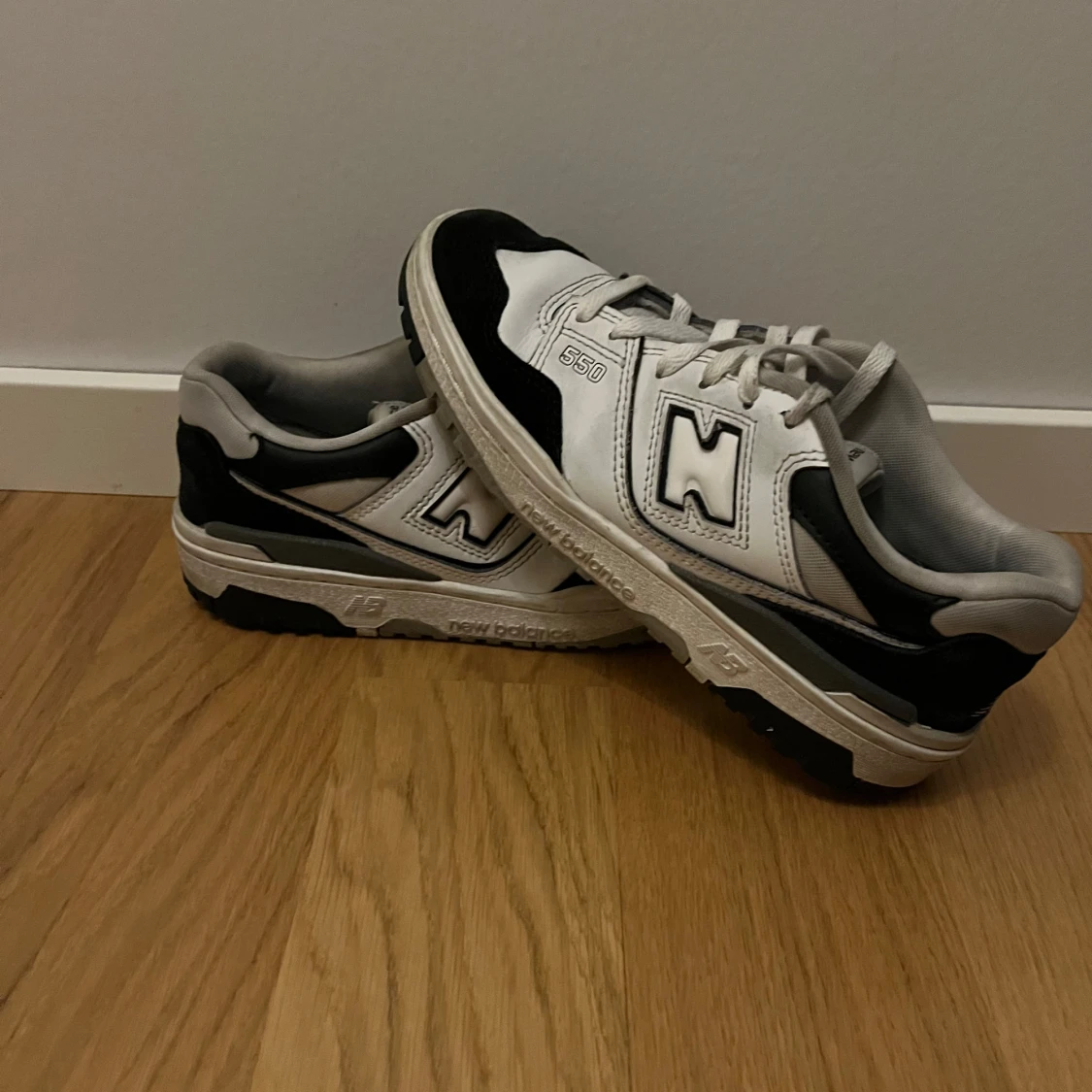 Snygga svartvita sneakers från New Balance med klassisk design. Skorna har snörning och en bekväm passform, perfekt för vardagsbruk. Den stilrena färgkombinationen gör dem lätta att matcha med olika outfits. Säljer då jag inte använder dom längre