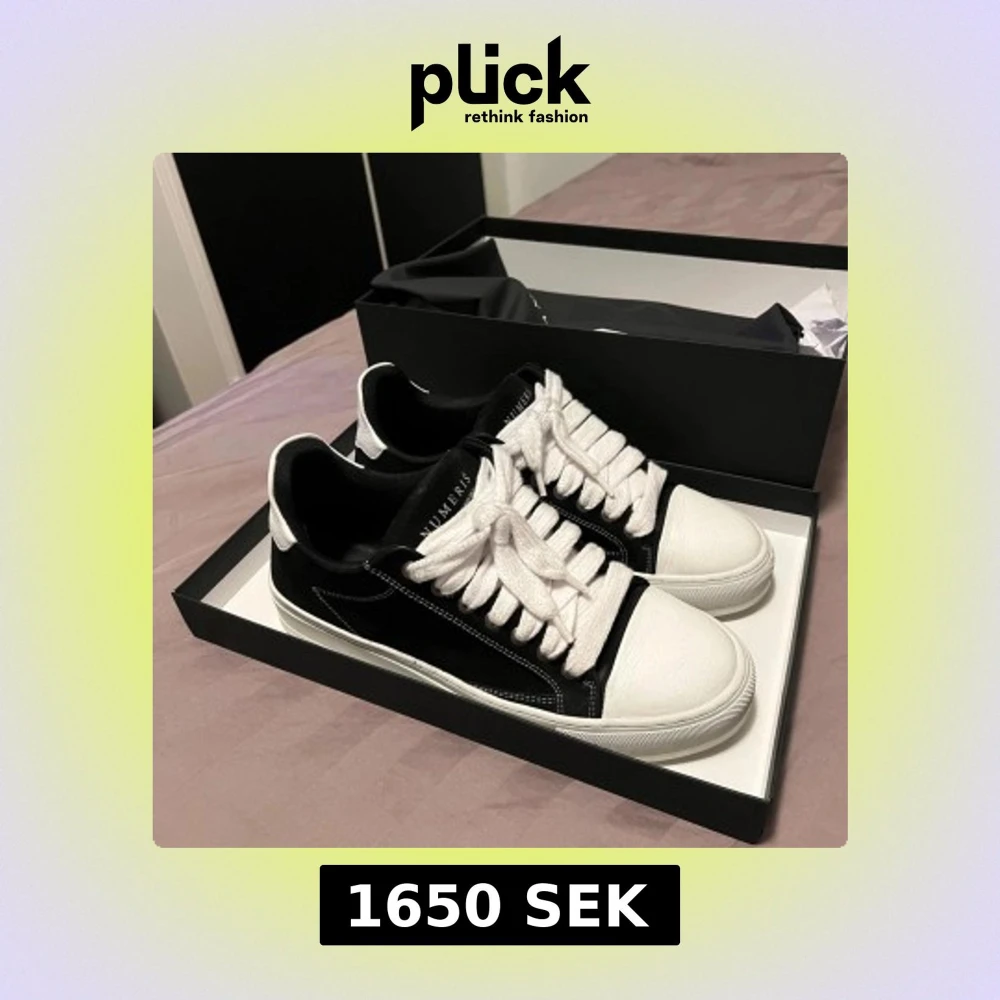 Snygga svartvita sneakers från Numeris med vit sula och snörning av typen Acrylic Black. I princip nyskick och originalboxen, extrasnören m.m. medföljer såklart. Storleken är 42 i EU eller 8 i UK, men passar mer som 42.5 till 43. Nypris är 2367 kronor.