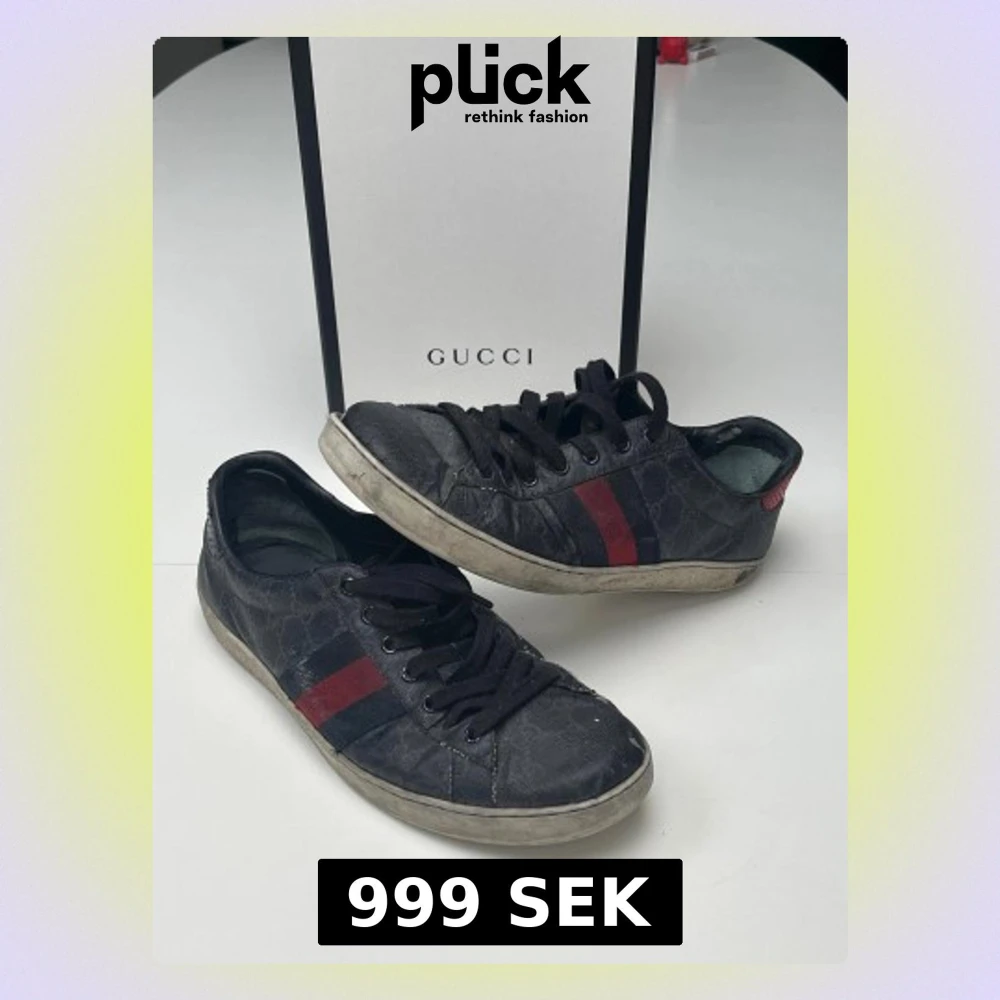 Tjena! Sjukt stiliga svarta Gucci Ace i storlek 44. Box, kvitto, och dystbag medföljer. Pris kan självklart diskuteras!