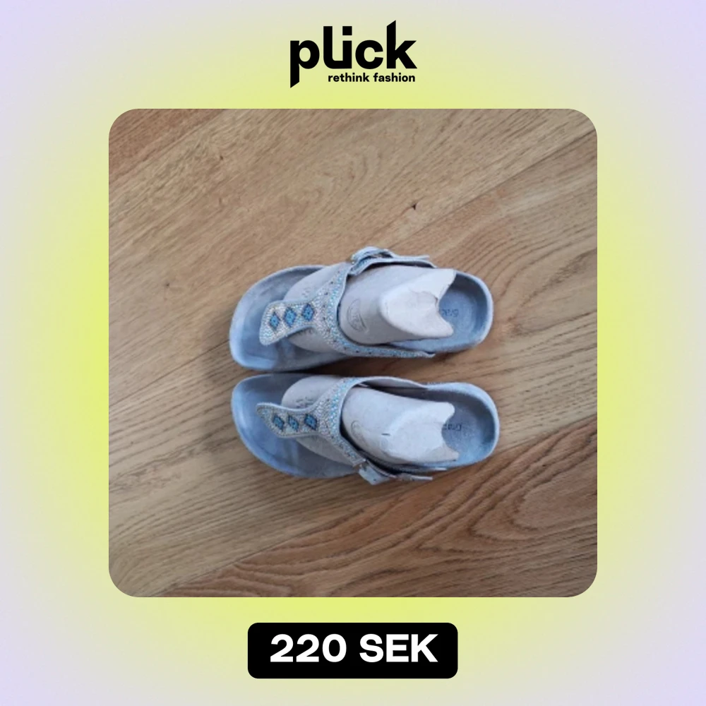 Mycket gott skick. Vackra samdaler i beige med pärlor i turkos, blå och guld. Bekväma både på fest och till stranden.