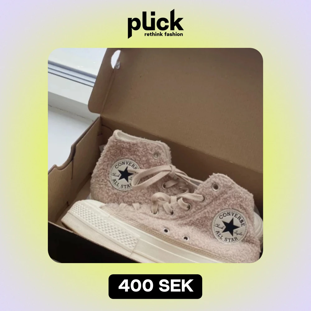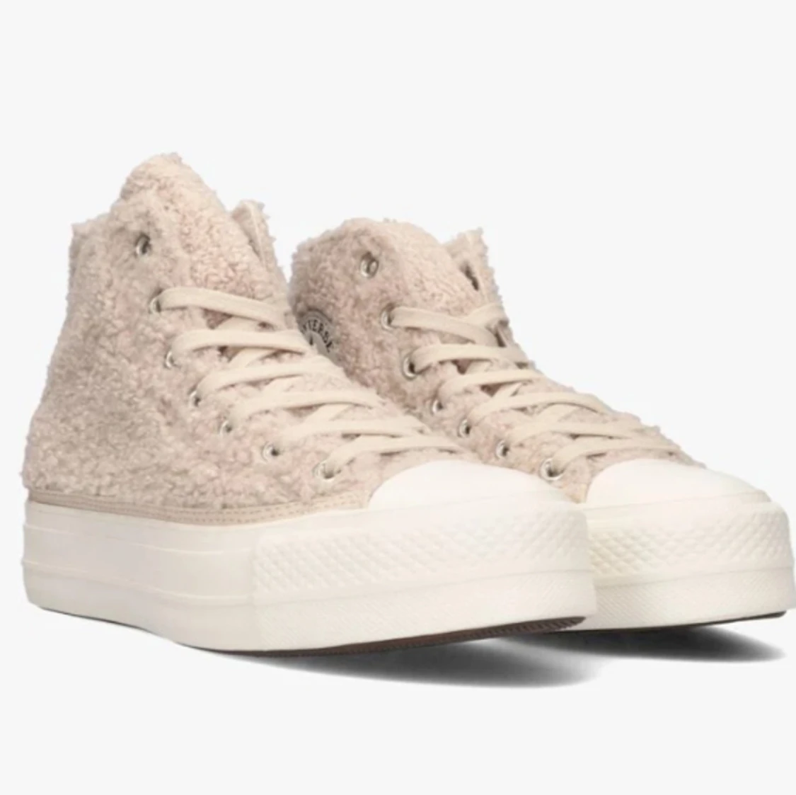 Beiga höga Converse i teddy-material💘 Knappt använda, motsvarar storlek 38