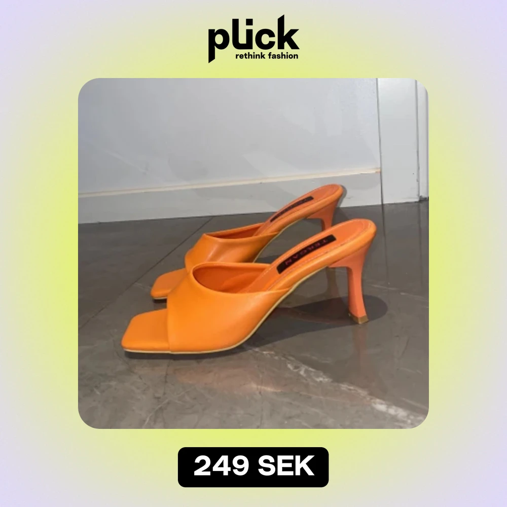 Helt nya klackskor, storleken passade inte mig och det fanns tyvĂ€rr ingen retur. Men dem Ă€r supersnygga och har en stark orange somrig fĂ€rg!đ§Ą köpt för 749kr, sĂ€ljer för 249kr. Priset kan dock diskuteras đ«¶đŒ