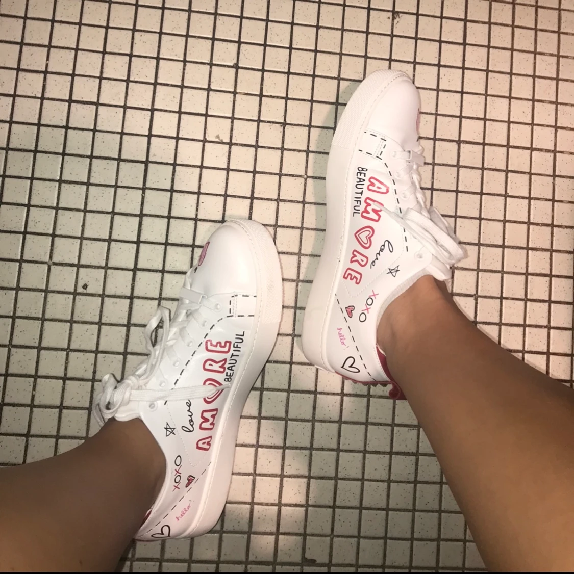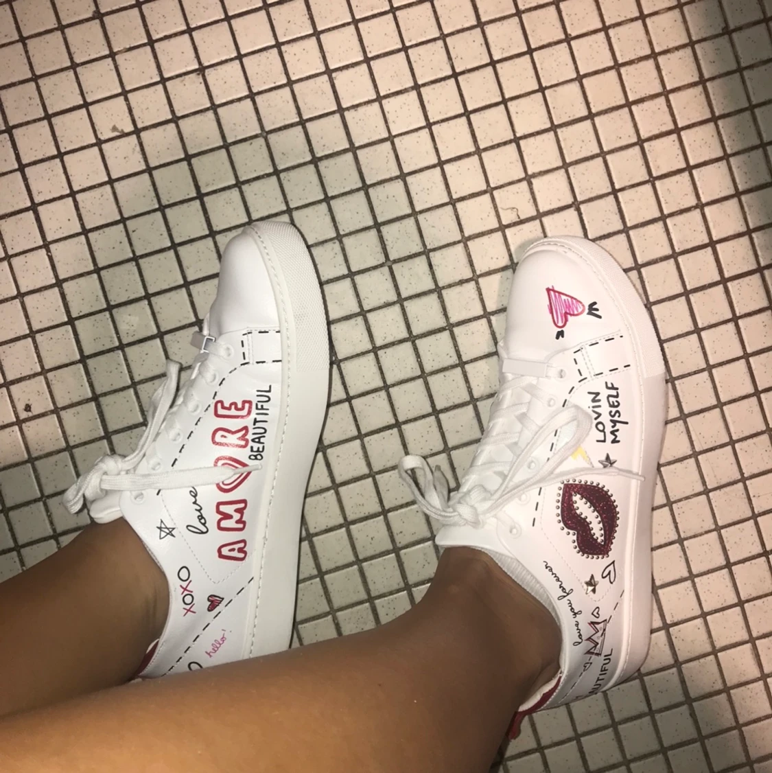 Säljer dessa asballa sneakers med olika tryck/målningar på ifrån märket ALDO och är köpa i USA. Dessa är alltså väldigt unika och jag har aldrig sett någon ha ett par likadana. Jag säljer bara om jag får bra bud. Köparen står för frakten och betalning sker via swish!💕💕