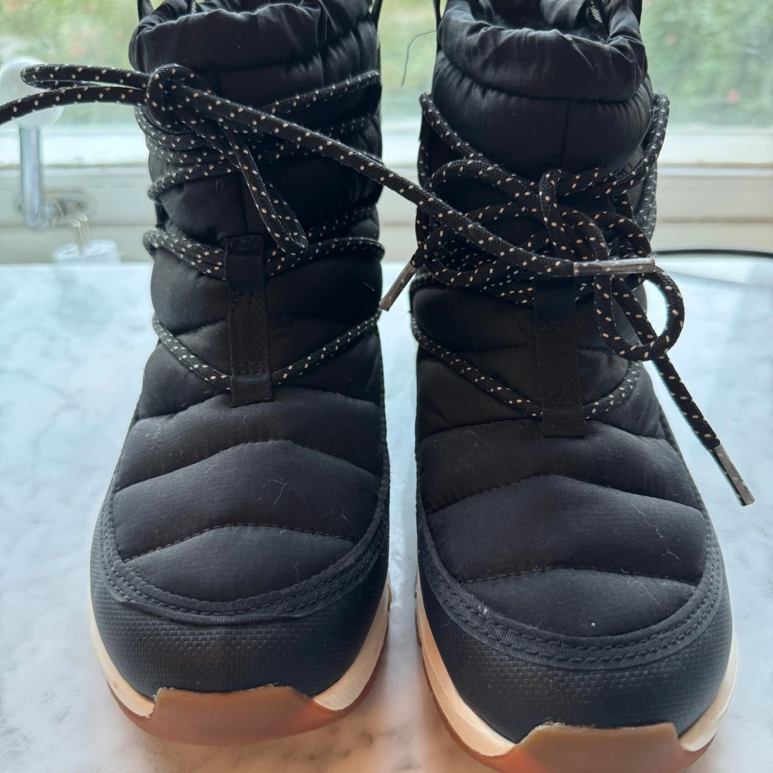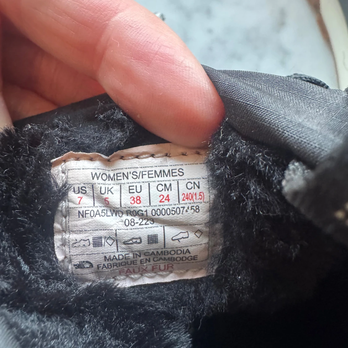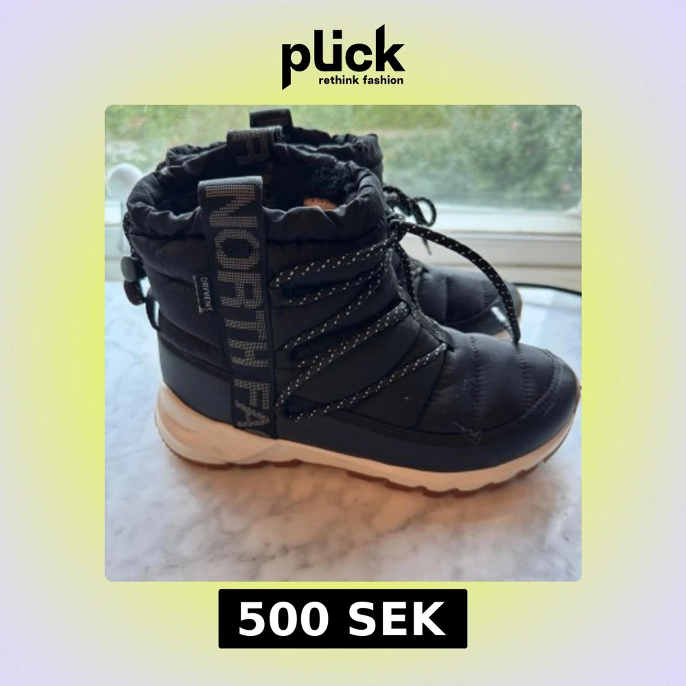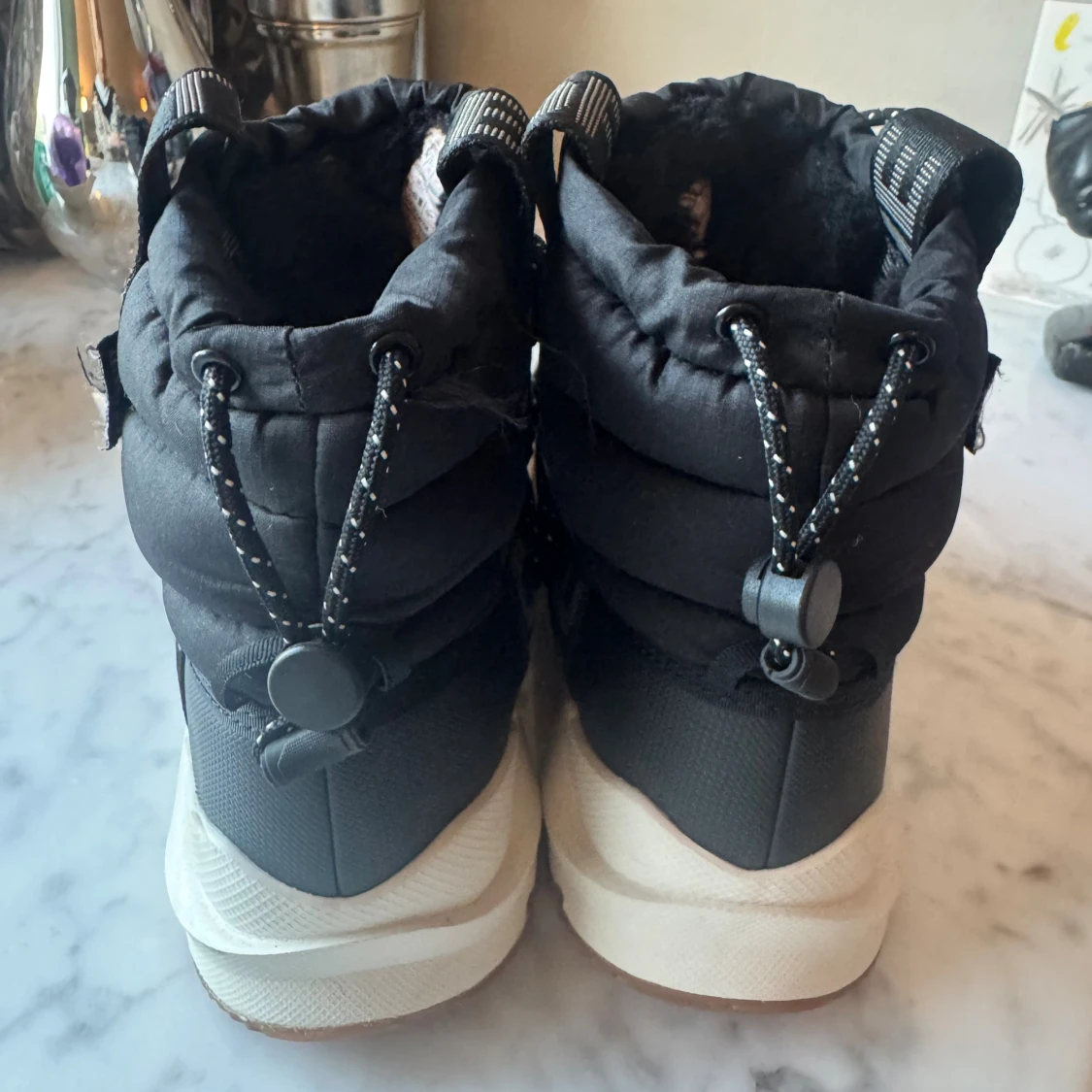 Säljer ett par svarta vinterboots från The North Face i storlek 38. Boots med snörning, tjock vit sula och fuskpälsfoder. Yttermaterial i syntet och textil, med stora logoband på sidan och reflexdetaljer på snörena. Perfekta vinterskor! Knappt använda