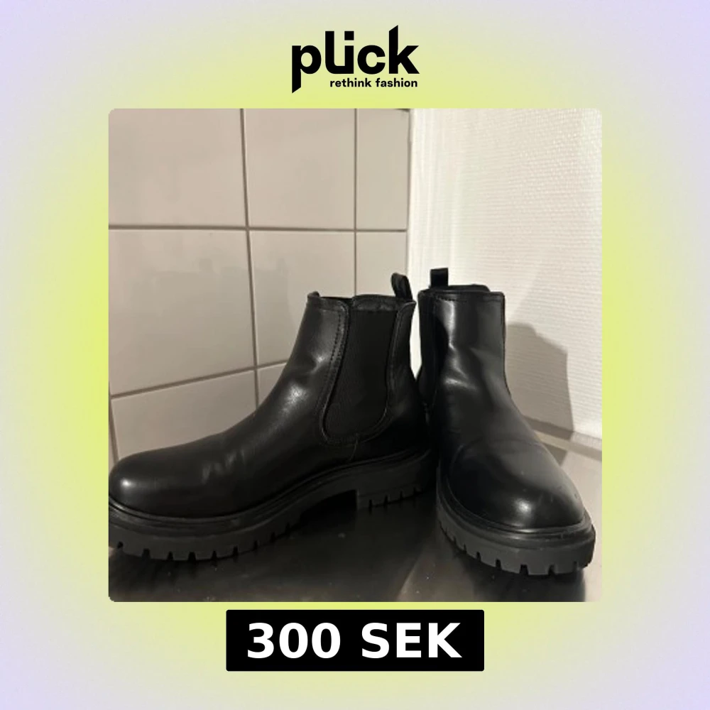 Stilrena svarta chelsea boots från North i storlek 39. Skorna är gjorda i slätt skinn med elastiska paneler på sidorna och grov sula för extra grepp. Insidan är fodrad med mjukt tyg för ökad komfort. Perfekta för höst och vinter.