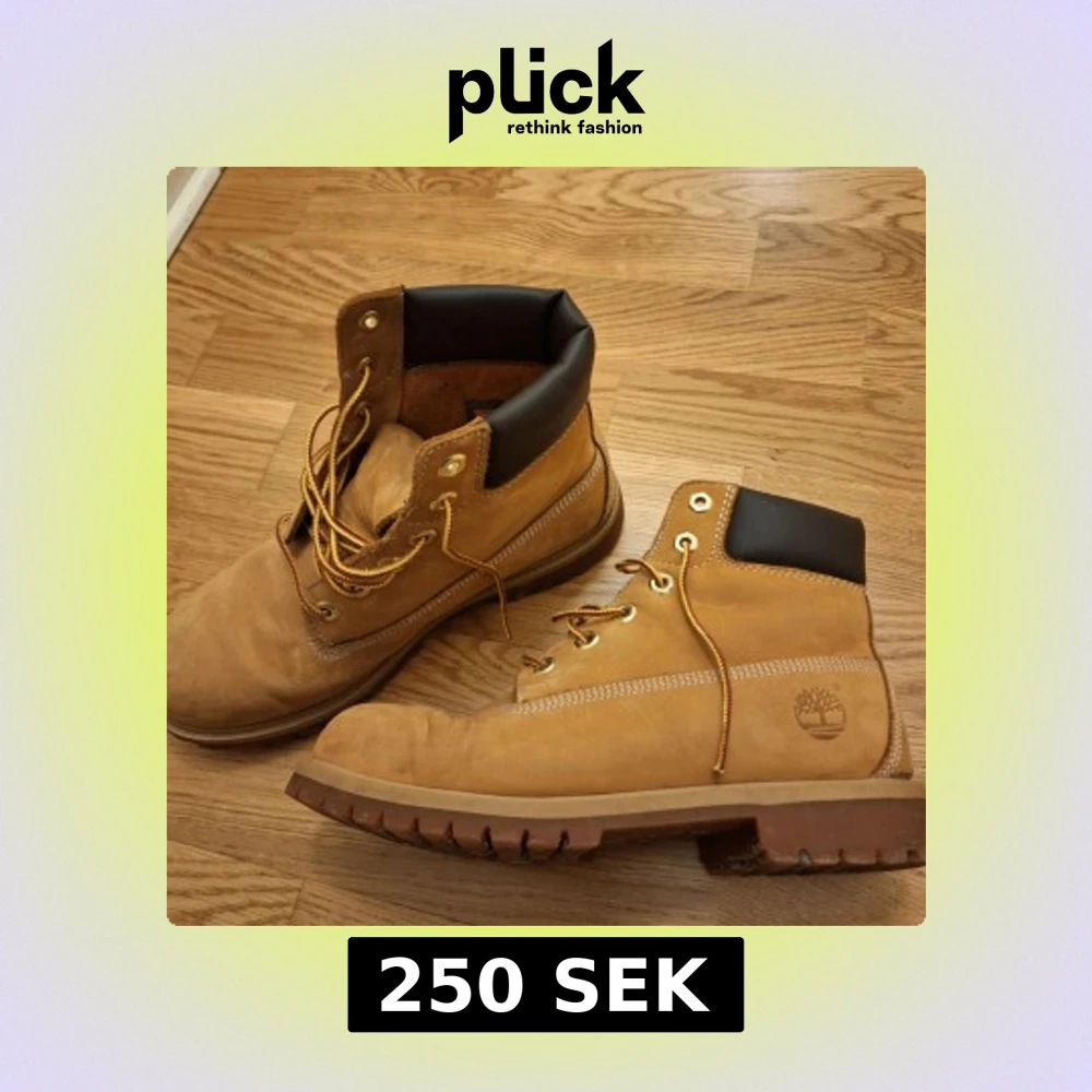 Säljer ett par klassiska Timberland boots i beige/orange mocka med bruna detaljer vid ankeln och grov sula. Skorna har rund tå, snörning med gulbruna skosnören och metallöglor. Timberland-loggan är präglad på sidan. Perfekta för höst och vinter. Skorna är i använt skick och kan behöva en ny innersula för comfortens skull! I övrigt är skon i bra skick men somsagt använd! Används tyvärr inte här hemma längre men älskar dem!💗