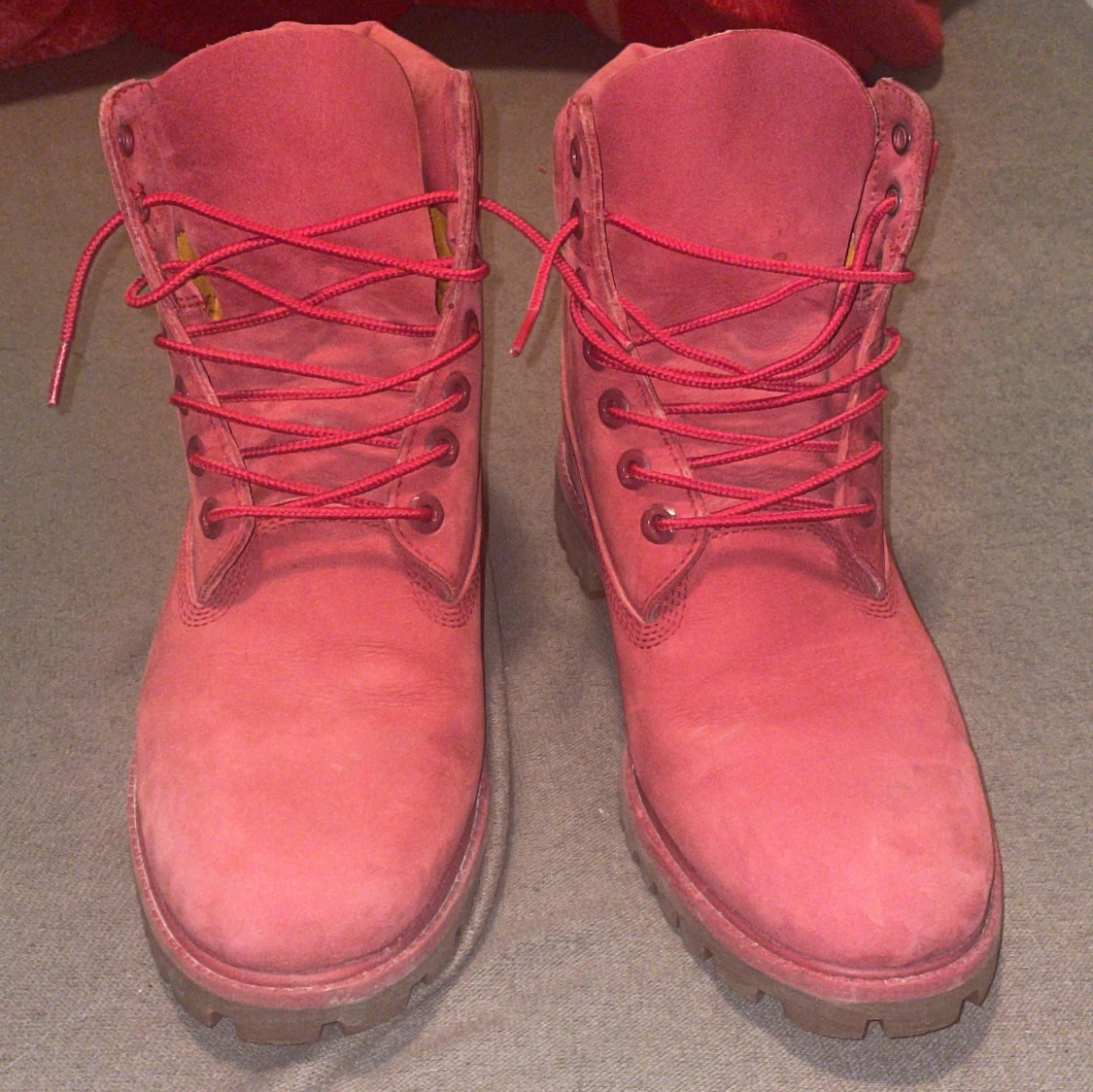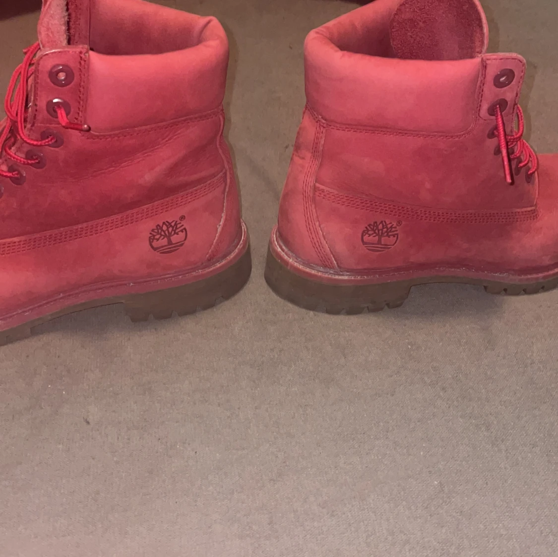 Snygga röda boots från Timberland med robust sula och snörning. Perfekta för en cool och avslappnad stil. Tillverkade i skinn med en bekväm passform. Säljer super billigt då storleken var för liten för mig och bara vill bli av med dom.