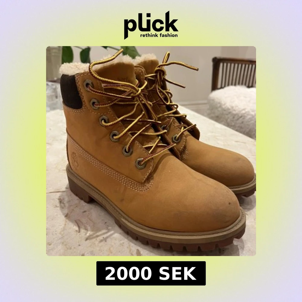 Ny pris: 2426kr. Klassiska Timberland boots i ljusbrunt skinn med grov sula och snörning. Det är mycket sparsamt andvända och Skorna har mörkbrunt parti vid hälen och är fodrade med mjuk ull för extra värme. Perfekta för kalla dagar och har en robust, ikonisk look.