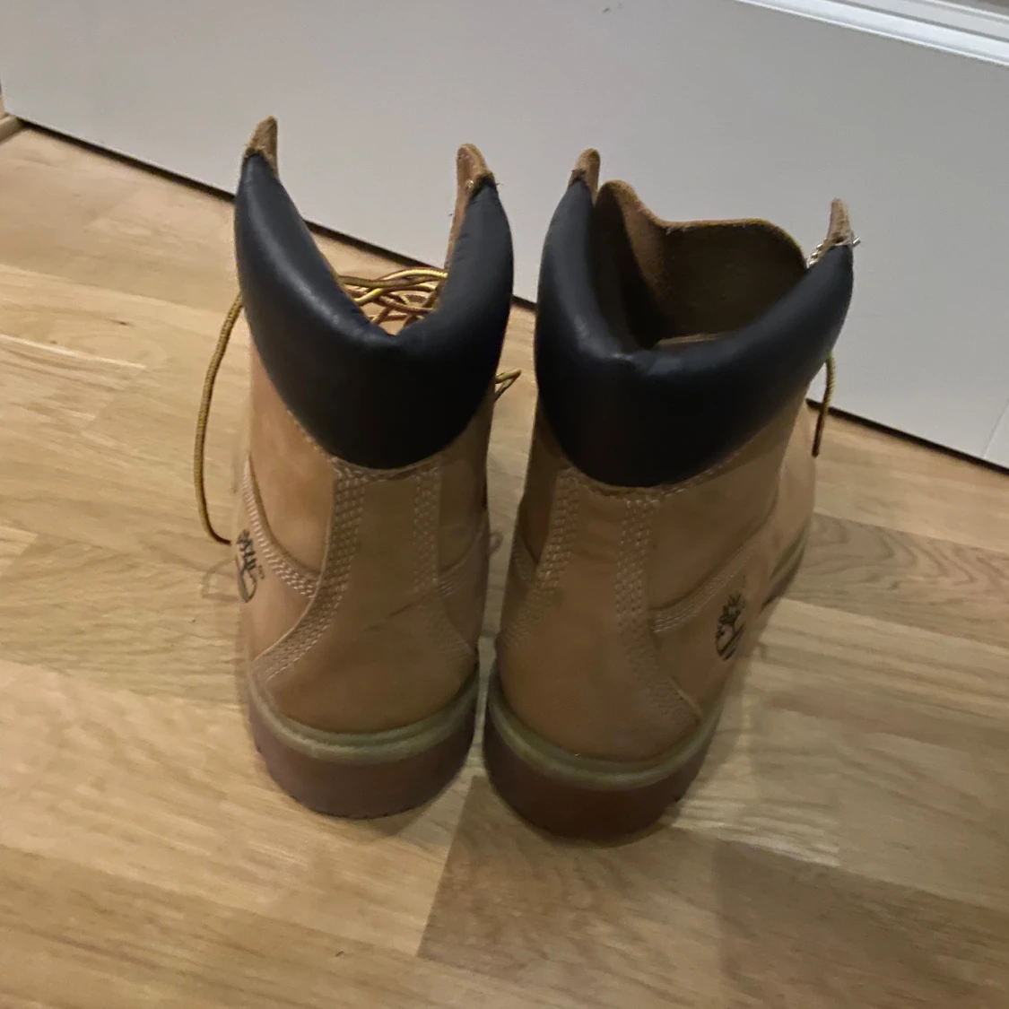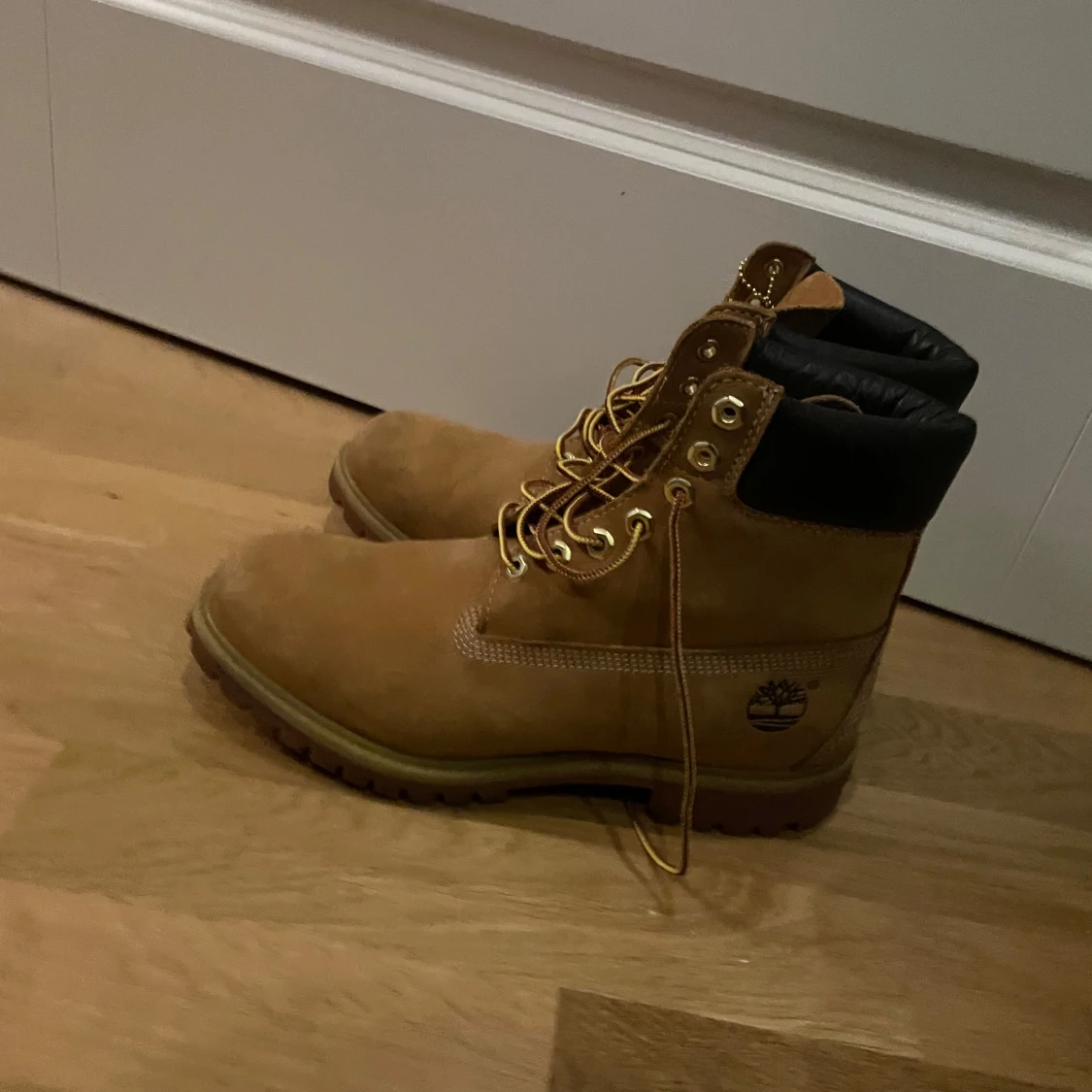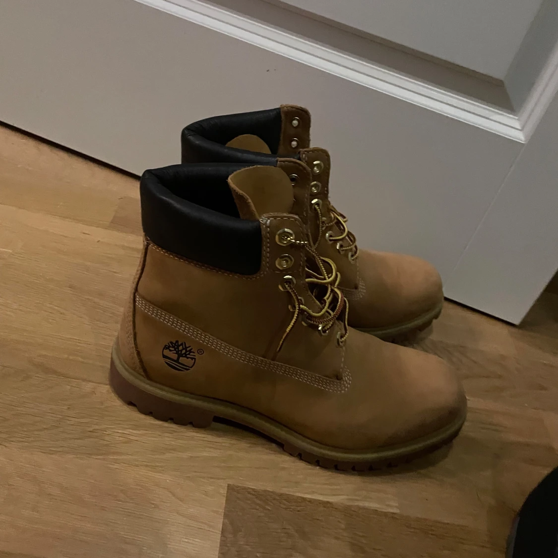 Säljer ett par klassiska bruna boots från Timberland med snörning och robust sula. Perfekta för höst och vinter med sin slitstarka design och bekväma passform. Mycket lite använda