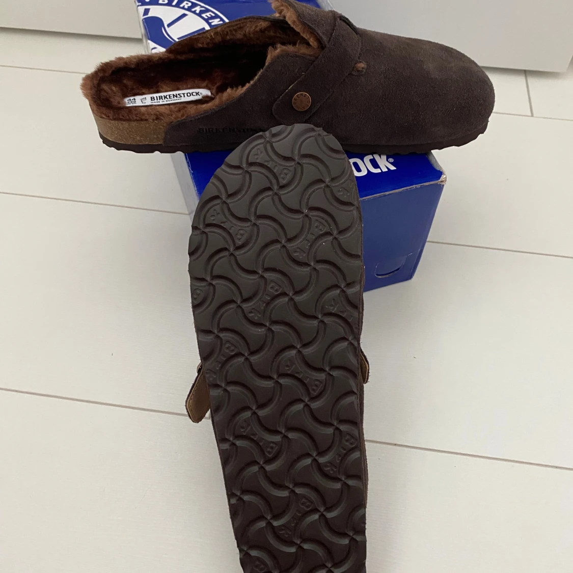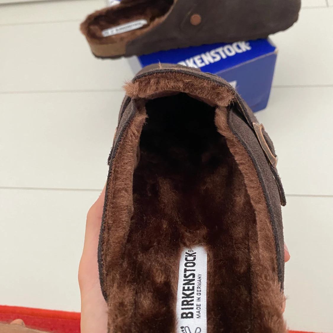 Bruna Birkenstock Boston Clogs i mocka med mjuk pälsfodring och justerbart spänne i metall. Snygg och chill slip-in modell med platt sula och rund tå. Perfekt för dig som vill ha extra cozy känsla under höst och vinter. Väldigt sköna och varma, mindre i storlek. Passar därför mer som 43