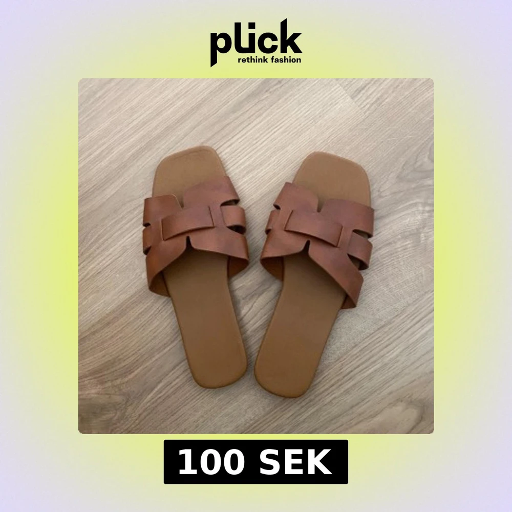 Säljer ett par stilrena bruna sandaler med breda, flätade remmar och fyrkantig tå. Skorna har platt sula och är perfekta för varma dagar. Snygg och enkel design som passar till många outfits.