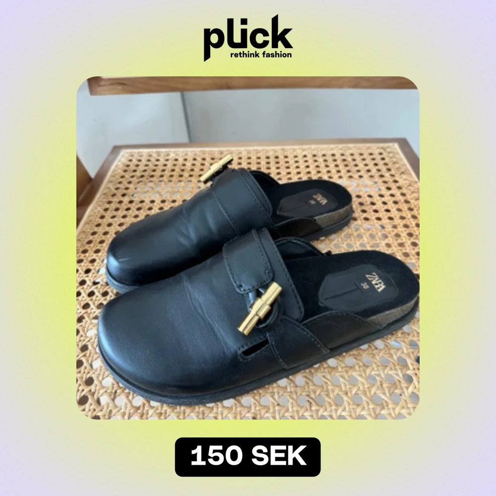 Tofflor i faux leather från Zara. Knappt använda så i bra skick förutom en liten, liten repa längst fram på ena skon (sista bilden.)