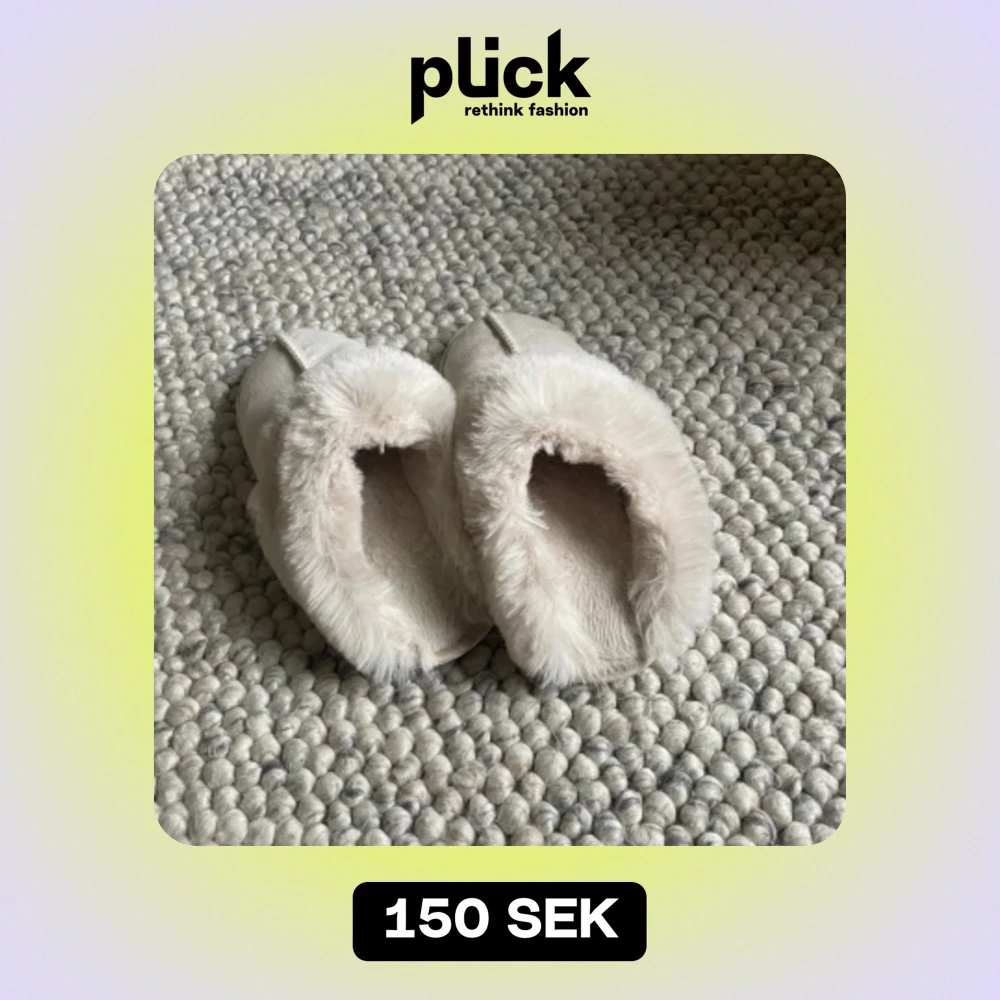 Vit-beigea fluffiga tofflor, välbevarade inte så mycket använda. Storleken är 39 men passar 38,5 till 40 också