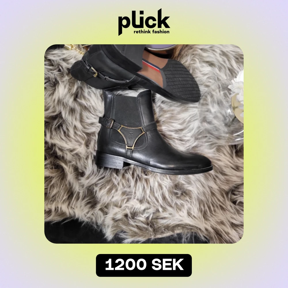 Snygga svarta boots i skinn från Tommy Hilfiger med dekorativt bälte och metallspänne. Perfekta för en stilren look. De har bara legat i garderoben och är i storlek 40...Jag säljer dem för 1000 kr