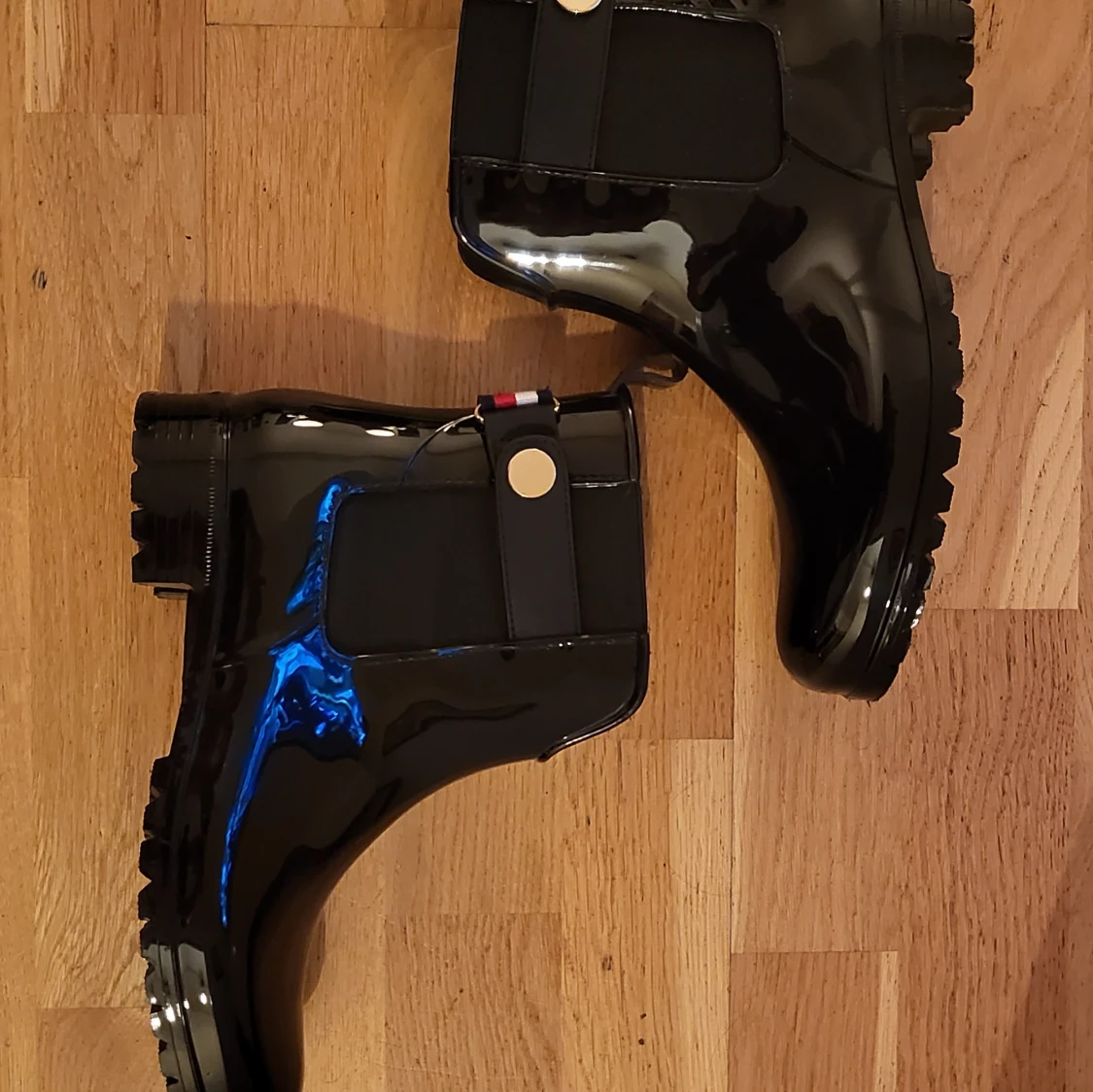 Svarta regn stövlar Tommy Hilfiger 40 andvända 1 gång för små för mig.