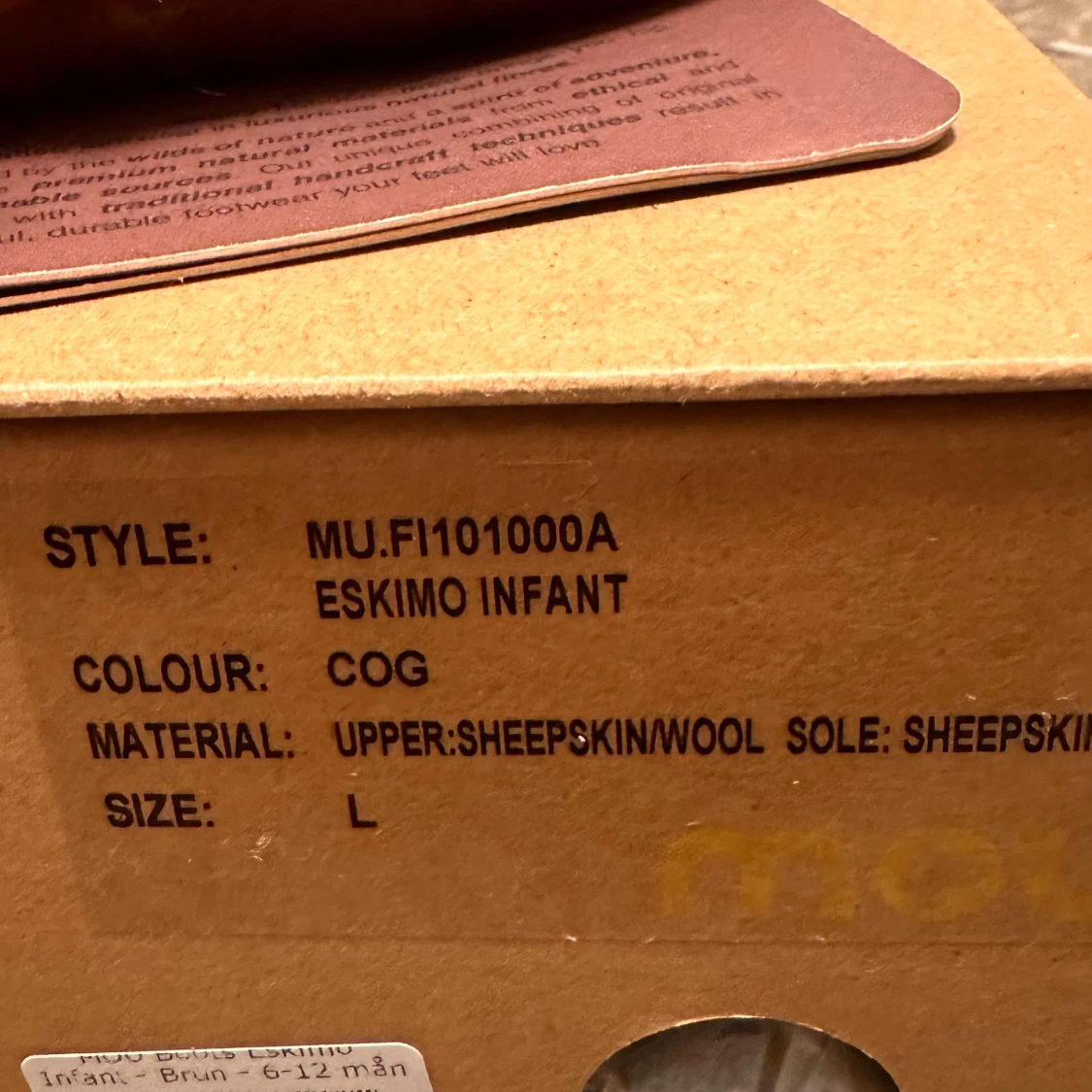 Mou eskimo baby skor i storlek L (6-12månader) Helt oanvända med prislapp och orginalbox Färg COG