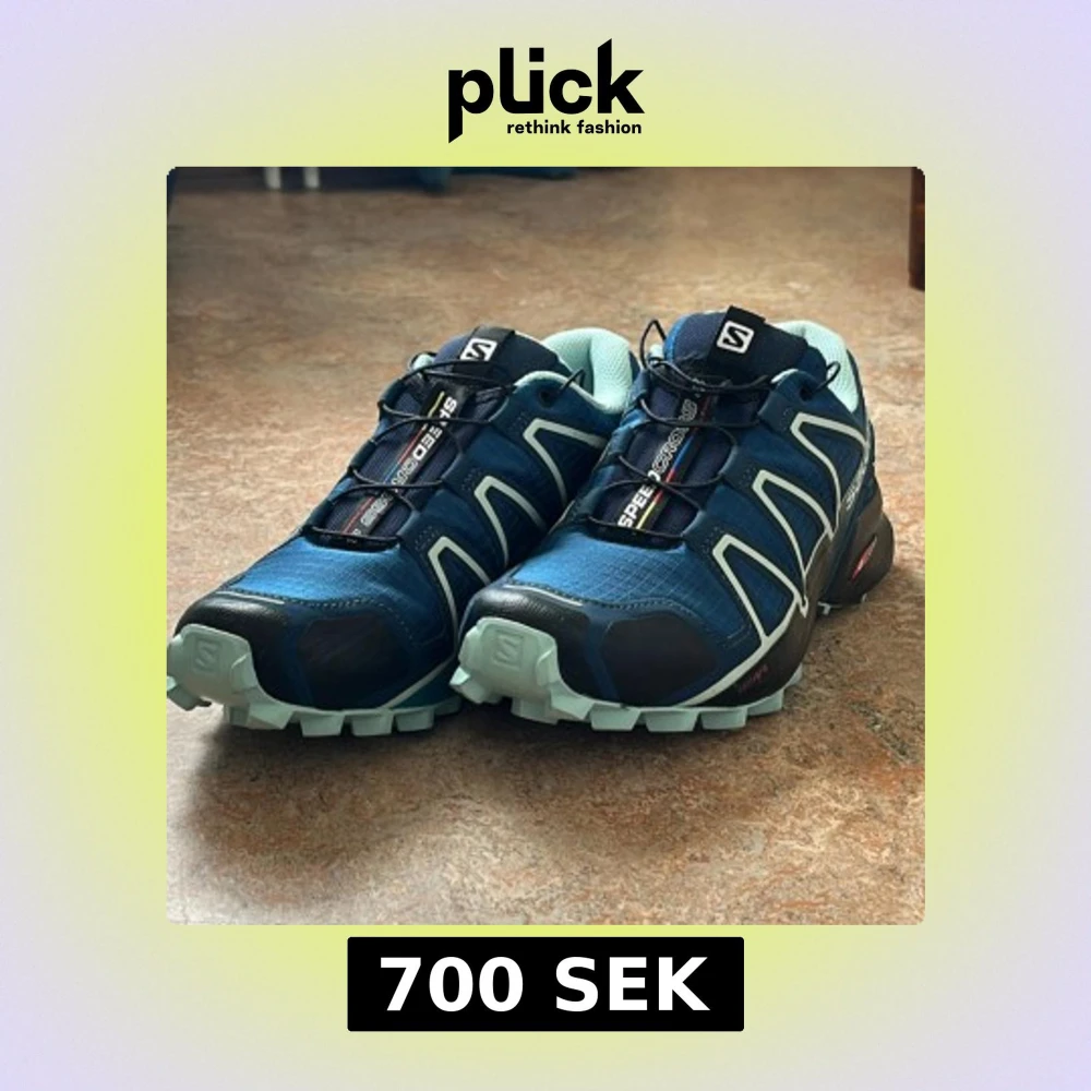 Salomon Speedcross 4 sneakers i blått med ljusblå detaljer och grov sula för extra grepp. Skorna har snabbsnörning och meshfoder för bra ventilation. Perfekta för löpning eller äventyr utomhus. Inmycket fint skick, använda två gånger. Säljs då de inte passa mig i formen