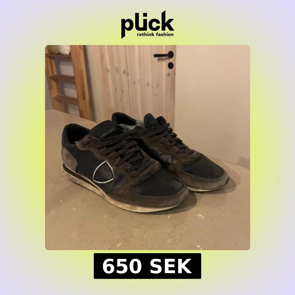 Snygga sneakers från Philippe Model Paris i mörkbrunt och svart. Ovandel i mocka och skin. Perfekt för hösten. Kom med frågar och bid mvh Edvin