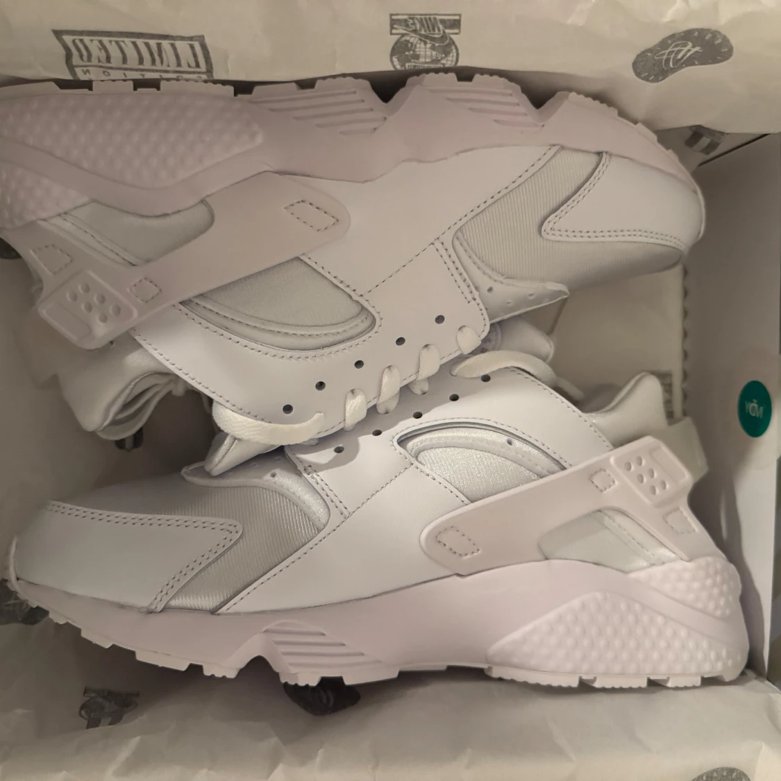 Nike Air Huarache i helvitt med klassisk chunky sula och ikonisk hälrem. Ovandel i en mix av skinn och syntet med meshpaneler för extra komfort. Snygg, sportig look med snörning och rund tå. Perfekt för dig som gillar stilrena sneakers med retrovibbar. Helt nya i box!
